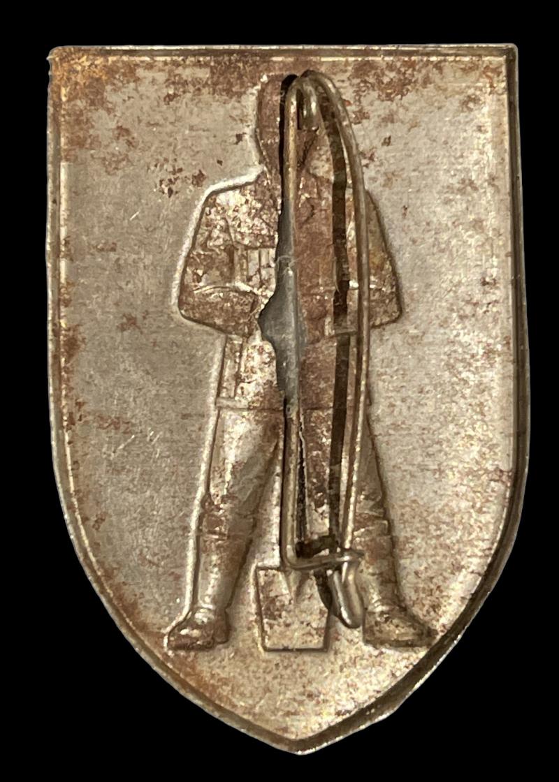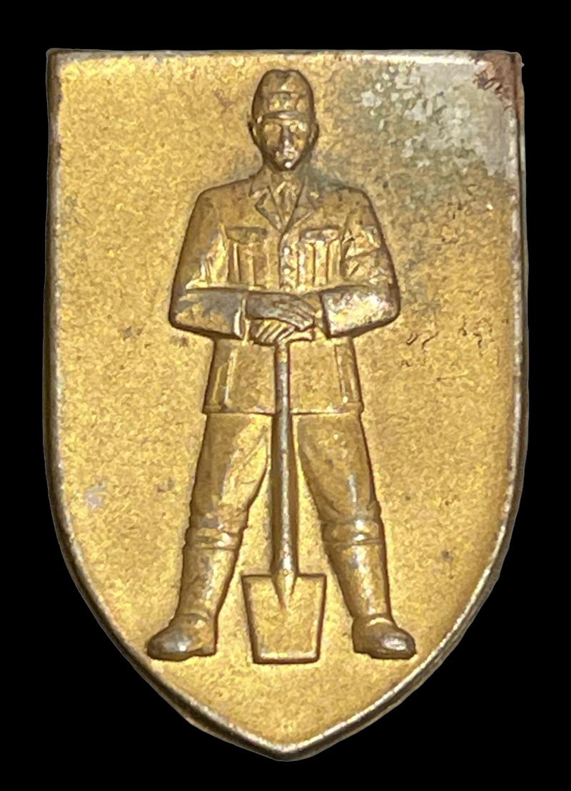 Reichs Arbeids Dienst Badge Lightweight metal made badge with RAD man holding his shovel “Reichs Arbeids Dienst” Nice used badge with its original attachment needle In good condition.