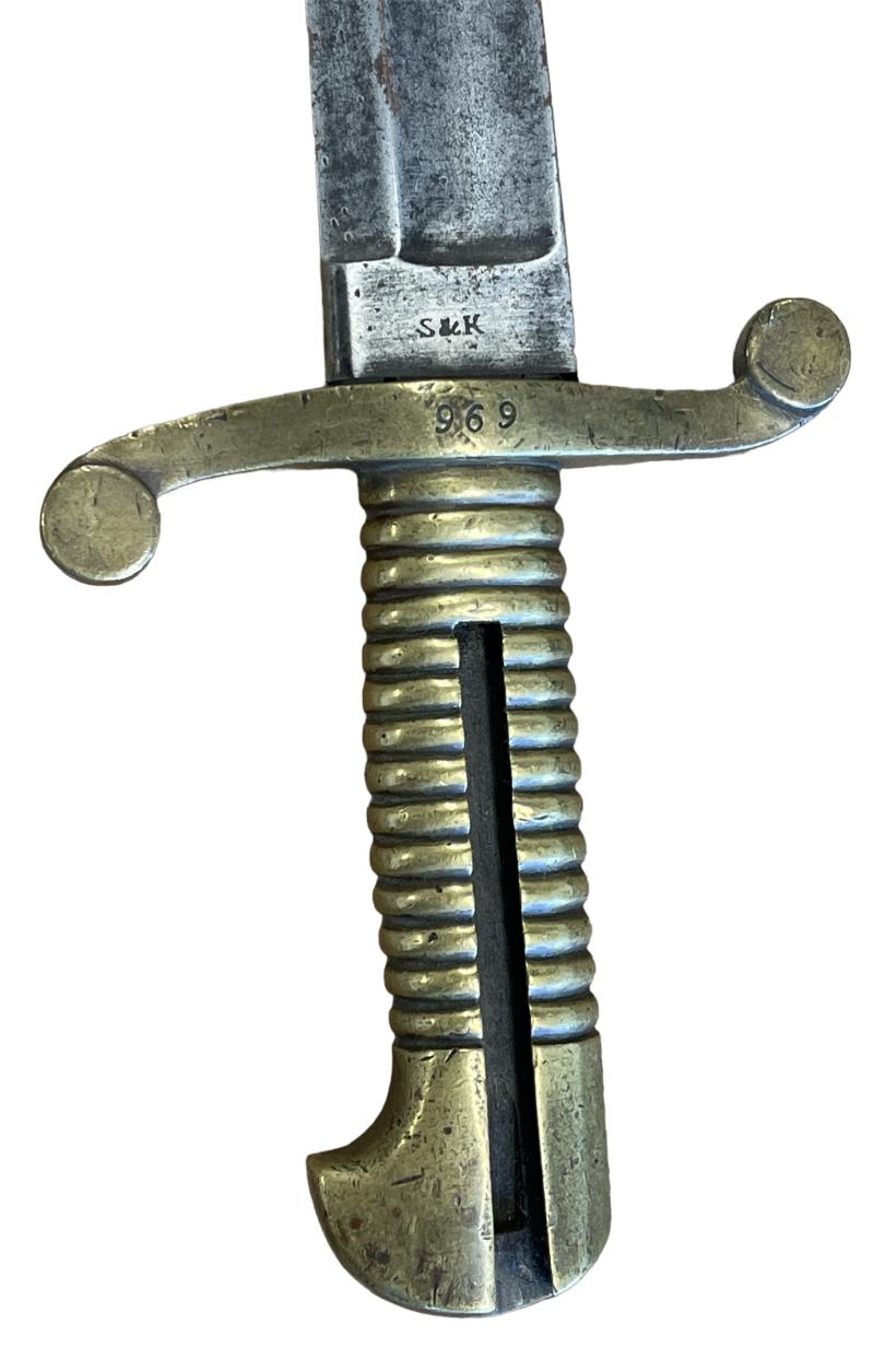 Nice used rare Bayonet for the Dutch Navy musket model 1854. Maker marked “S.& K.”