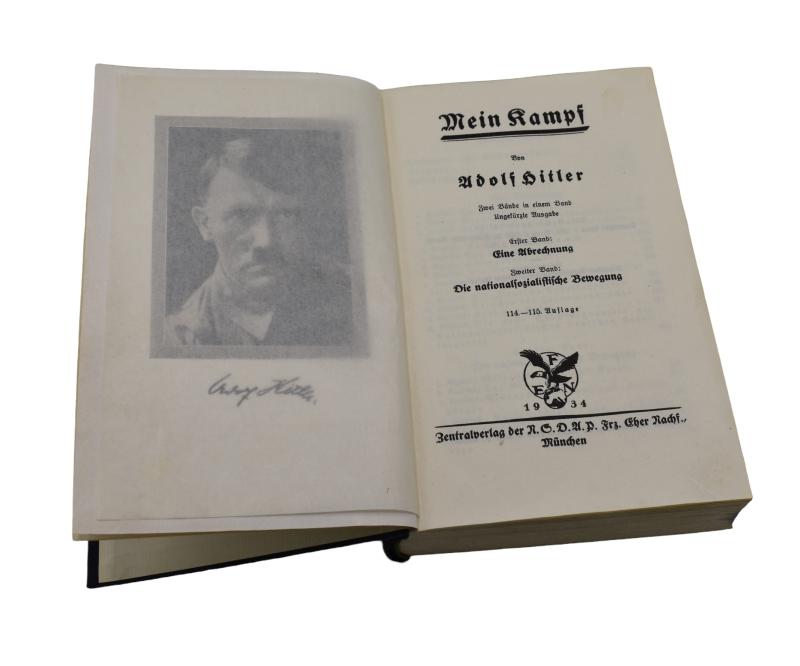 Rare very early example Mein Kampf 1934 Very nice example of “Adolf Hitlers” Mein Kampf, dated “1934” (rare to find such an early Mein Kampf) For historical purposes only. In very good condition.
