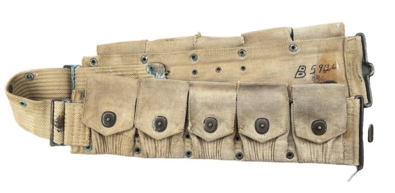 Very nice used US WW1/WW2 US 1903 Springfield ammo belt, dated “1918” The belt would holt 200