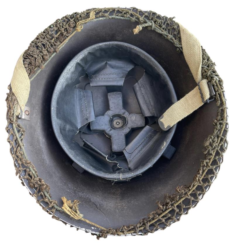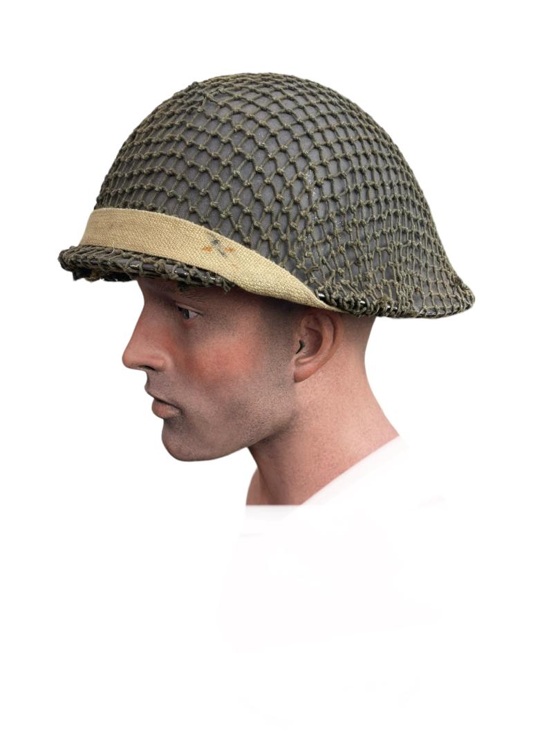 The British WW2 Turtle helmet comes with an original camo helmet net. Overal a fantastic British Turtle helmer in used but very good condition.
