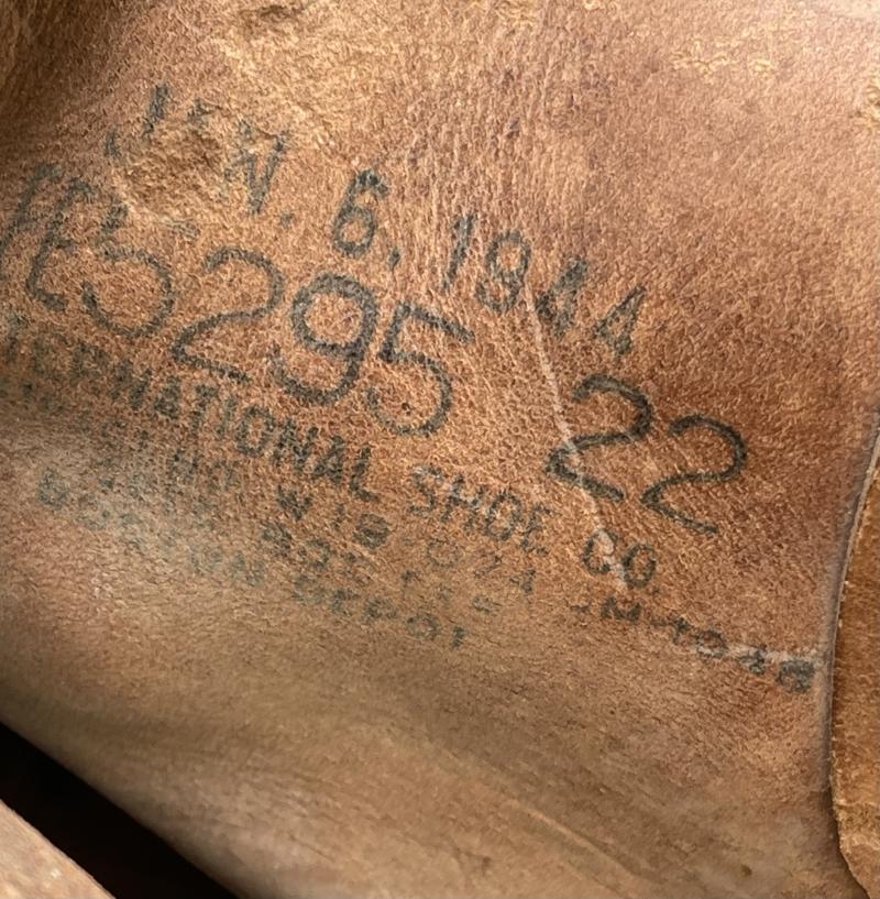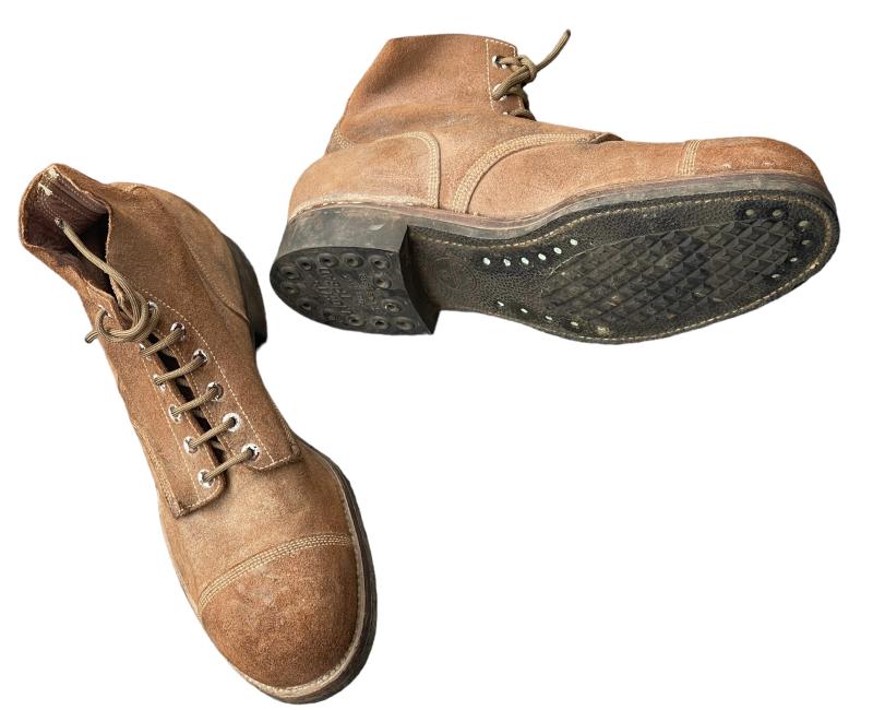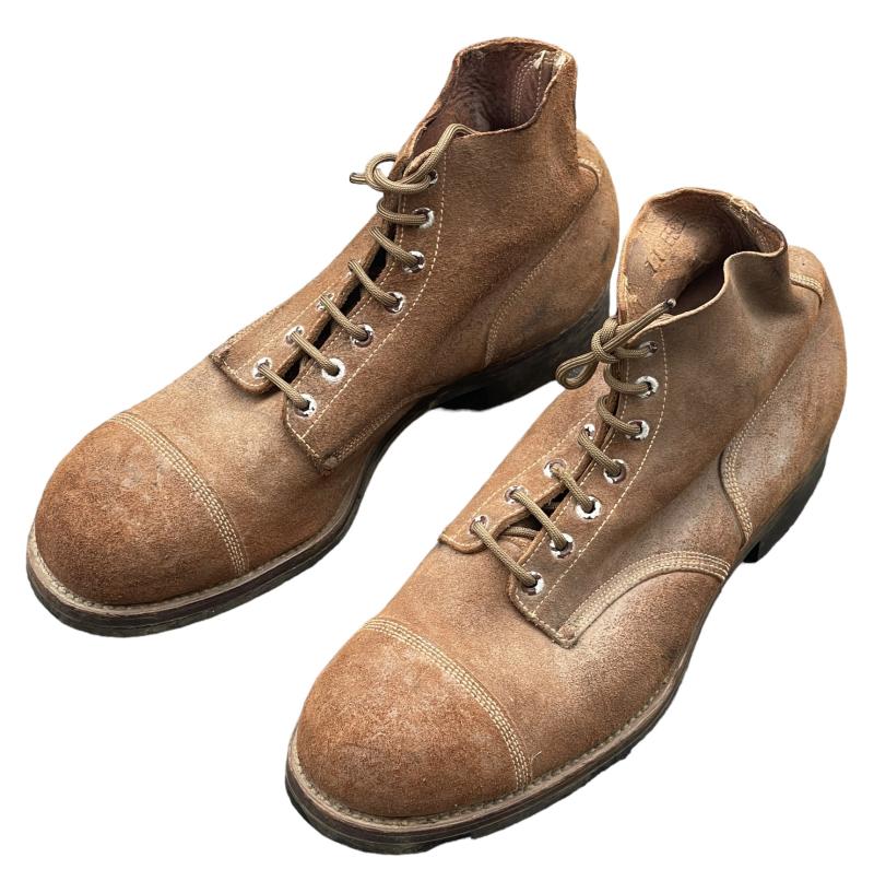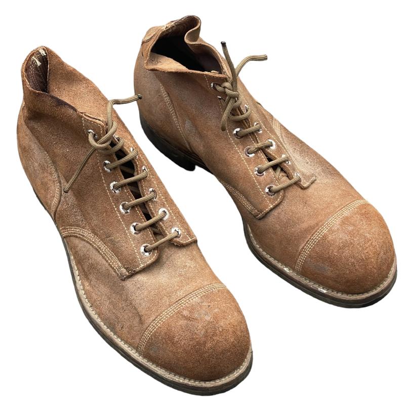 Fantastic near mint and rare to find US WW2 so-called “Rough-Out” low boots. Dated “January 1944”