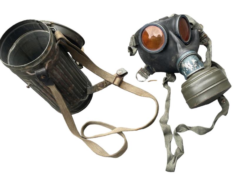 Overal in used but very nice Wehrmacht M31 gasmask and cannister in good condition.