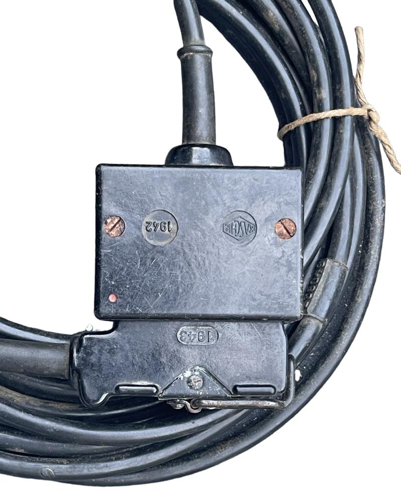 Wehrmacht FF33 Fieldphone Extention Cable Fantastic condition rare to find Wehrmacht FF33 fieldphone extention cable. Dated “1942” Rubber In outstanding condition. Great gor a signals display!