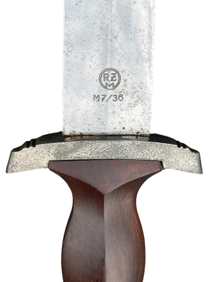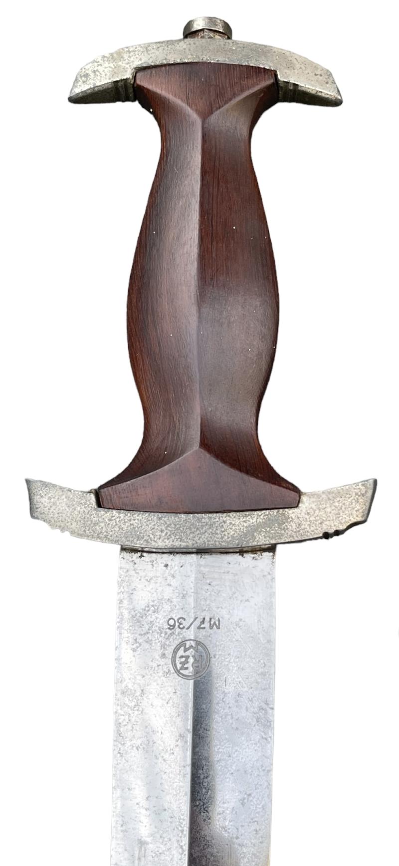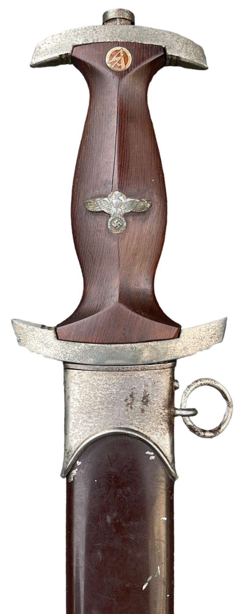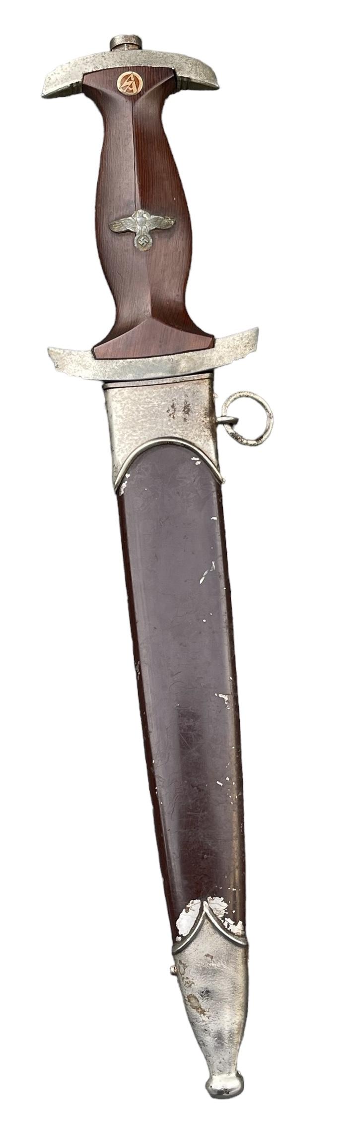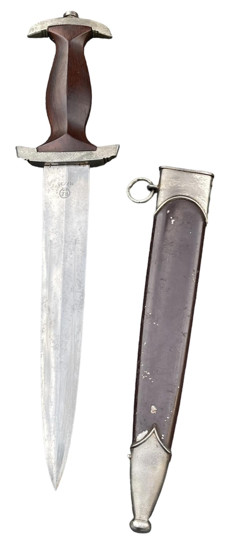 SA Dagger Late war used SA dagger, with its original metal scabbard. With motto “Alles für Deutschland” Dagger is “RZM M7/36” marked Which is “E.&F. Horster, Solingen” Overal a used dagger in good condition.