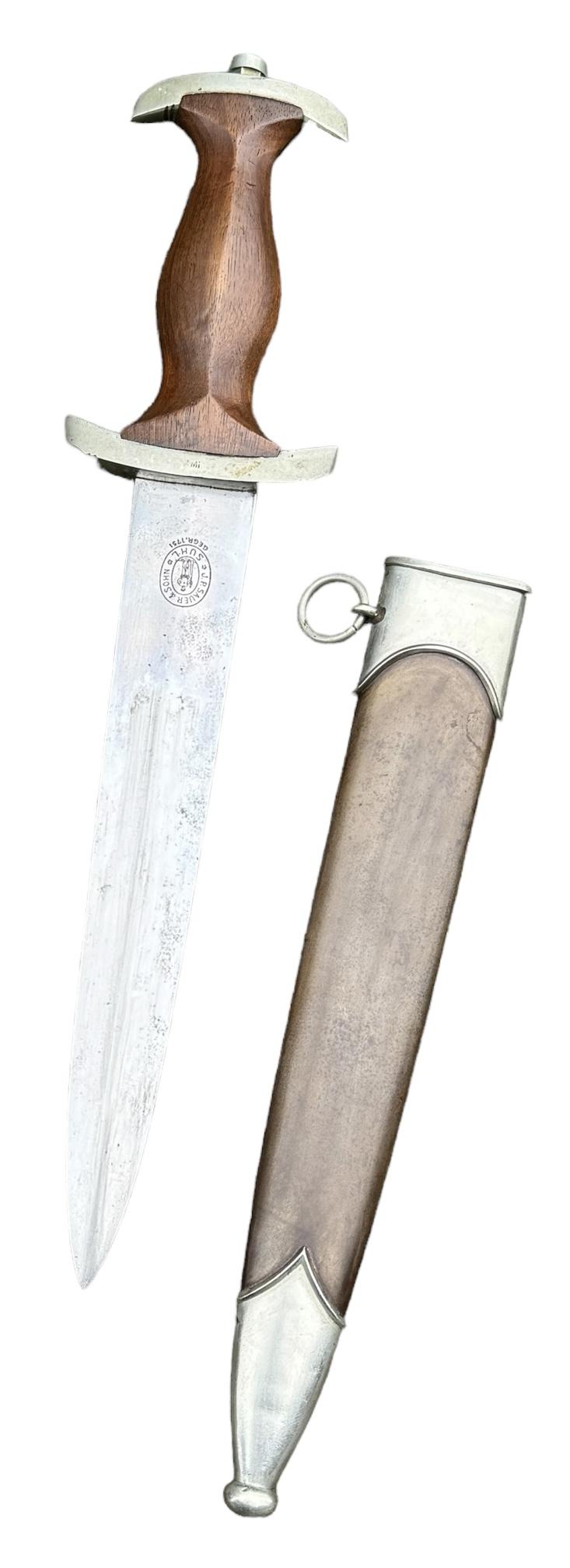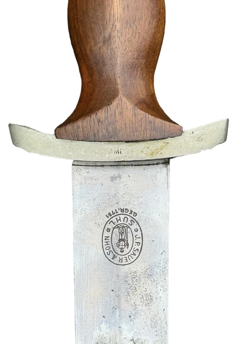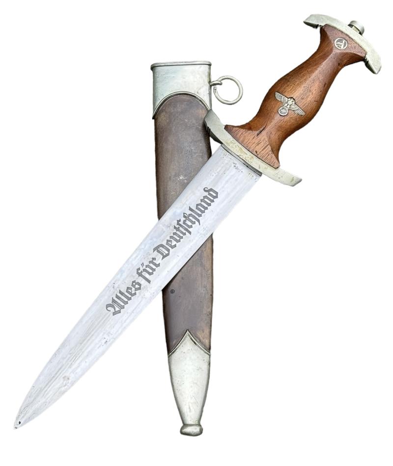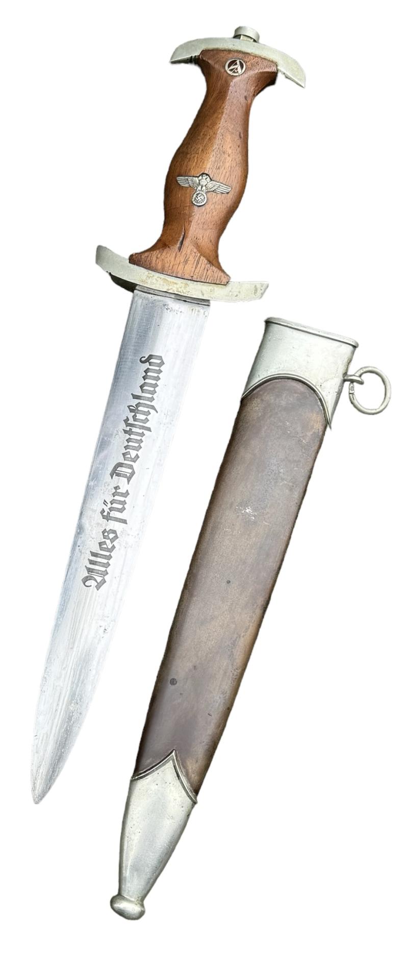 SA Dagger Very nice SA dagger with its original metal scabbard Maker marked “J.P. Sauer.& Sohn, Suhl” (rare maker) District marked “Mi” Overal a nice used SA (Sturm Abteilung) dagger in very good condition.