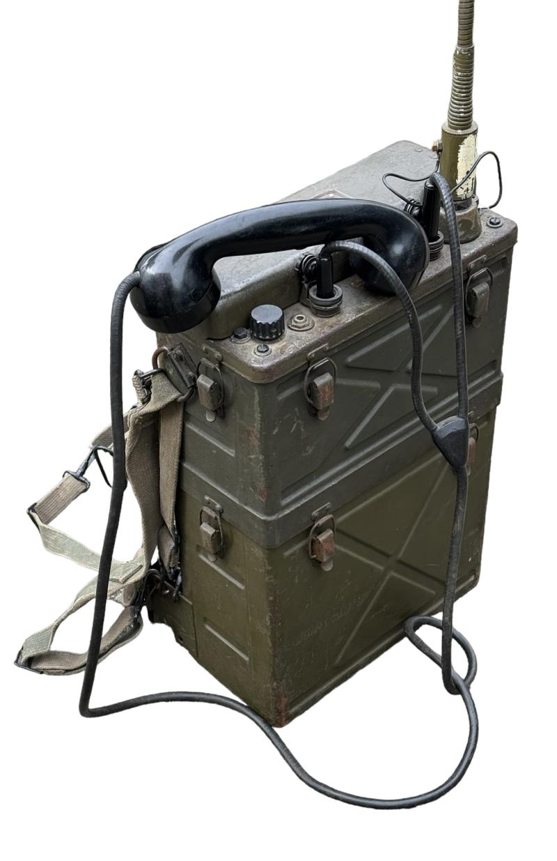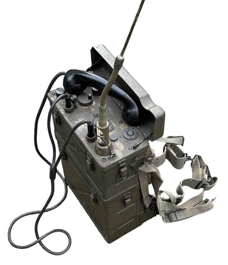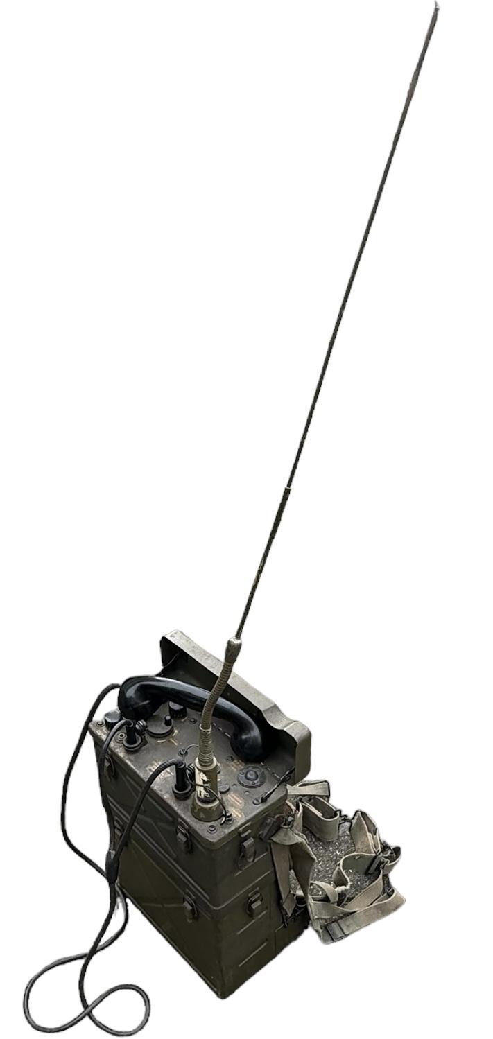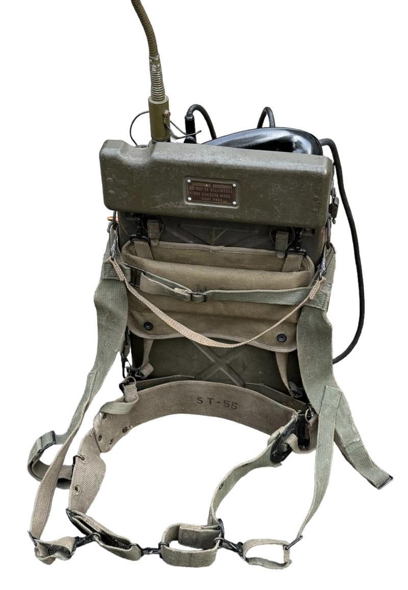 Very nice used US WW2 Signal Corps “BC1000 A” transmitter/receiver for combat field use, complete with handset, troat microphone, antenna and carrying frame. Dated “1944” fantastic for a signal corps display or very nice and decorative on a combat radio operator mannequin! In used but good condition.