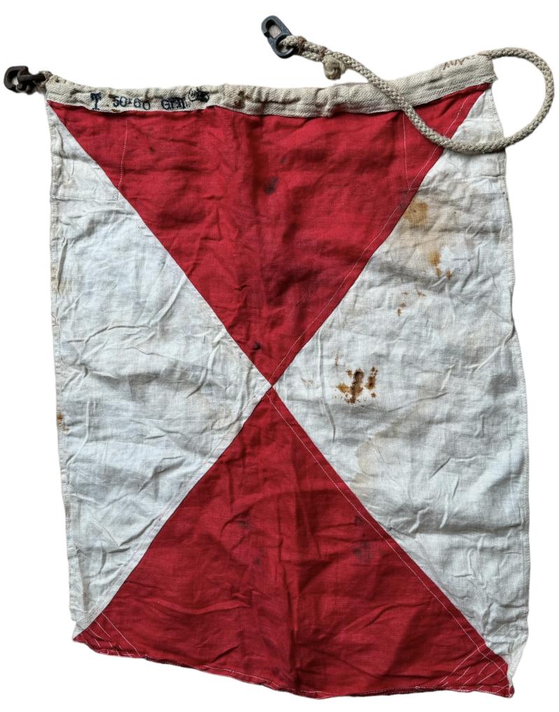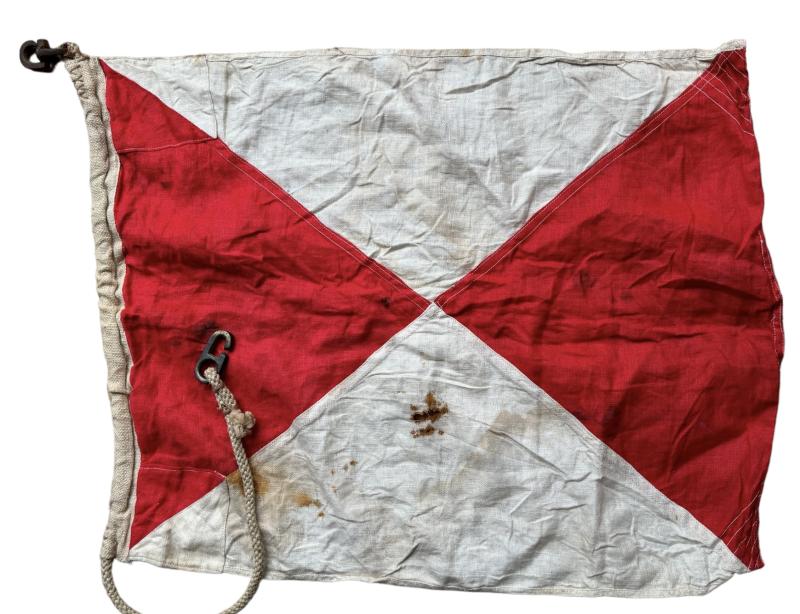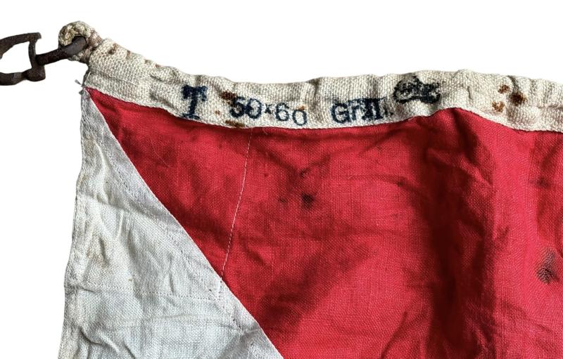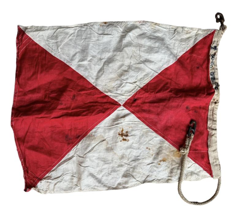 Very nice used Kriegsmarine ship so-called “Signal” flag. Nicely “Kriegsmarine” eagle stamp marked.