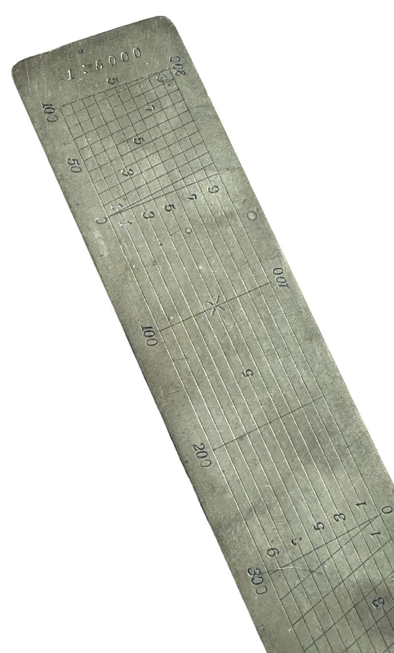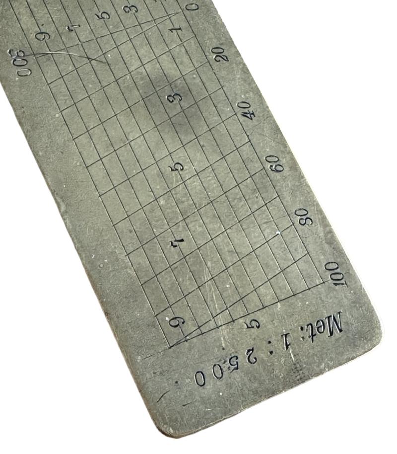 Wehrmacht Mapcase Measuring Tool Nice used messing made Wehrmacht mapcase measuring tool. Scale “1 : 1000, 1 : 2000, 1 : 2500, 1 : 5000” In used but very good condition. Nice for a mapcase display!