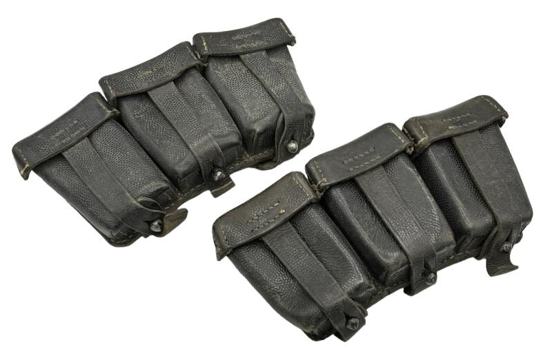 K98 Ammunition Pouches set Near matching set of second model K98 ammunition pouches. Both maker marked. Overal used but fantastic K98 pouches in very good condition. Would fit in every WW2 collection!