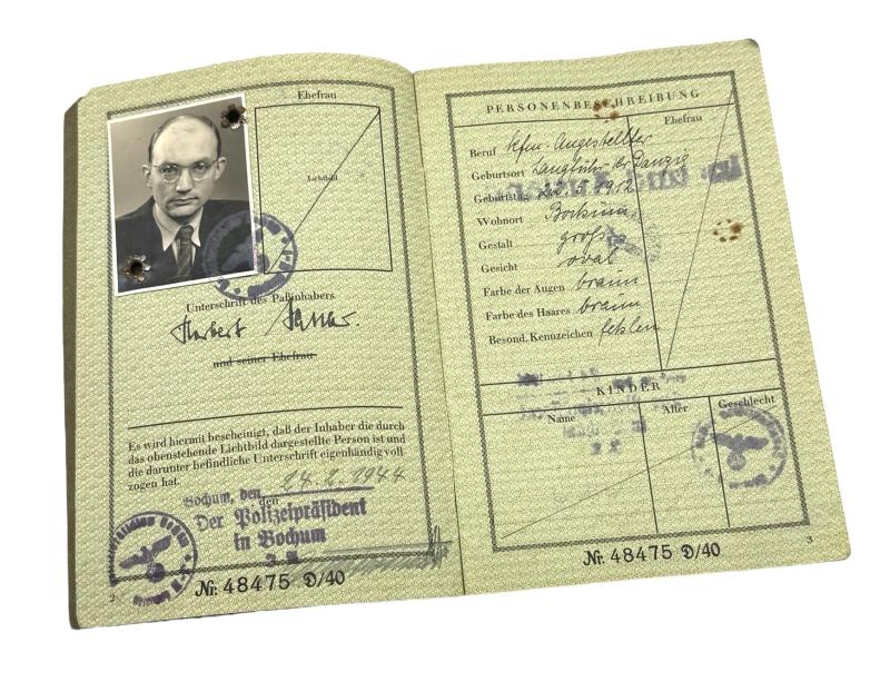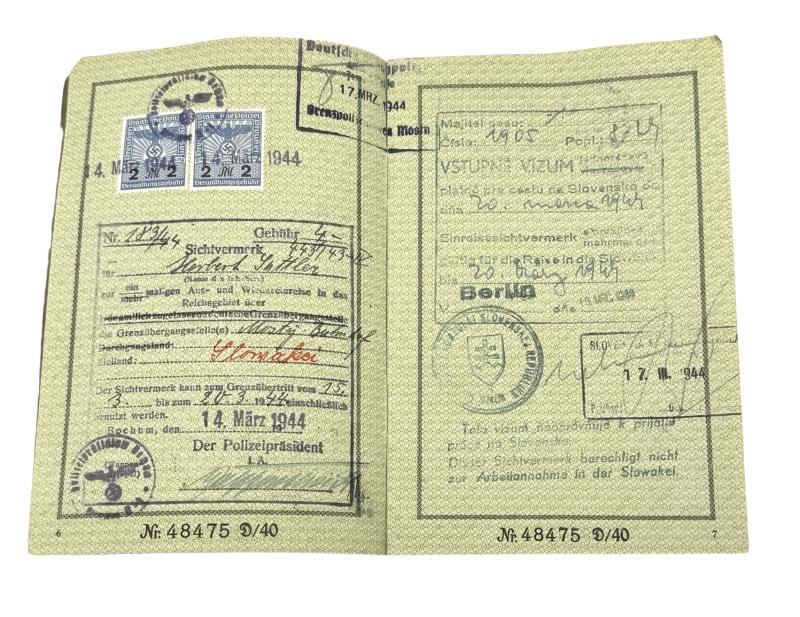 Deutsches Reich Reisenpass Third Reich travel passport of the female “Herbert Walter Sattler” dated “1944” With her photograph inside. For traveling in Germany and abroad In used but very good condition.