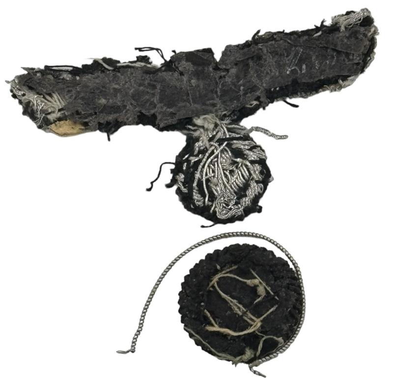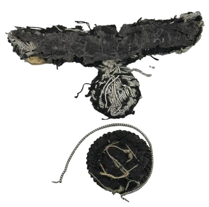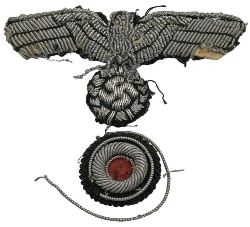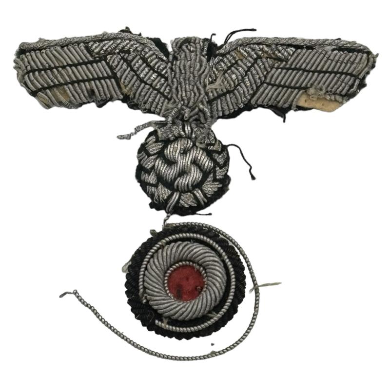 Wehrmacht Visor Cap Eagle and Cocade Salty condition embroidered Wehrmacht visor cap eagle and cocade. In cap removed salty condition. Still nice for display!