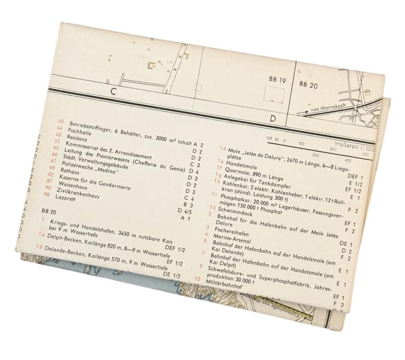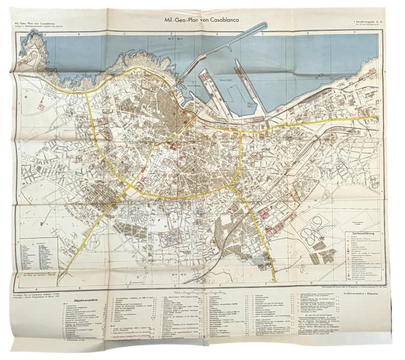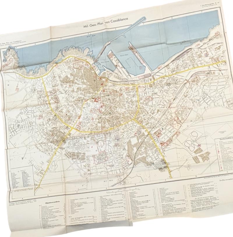 Wehrmacht Road Map Casablanca Very nice Wehrmacht road map. Fantastic for a “Deutsches Afrika Korps” display! or as framed wall decoration. Dated “1935” in good condition.