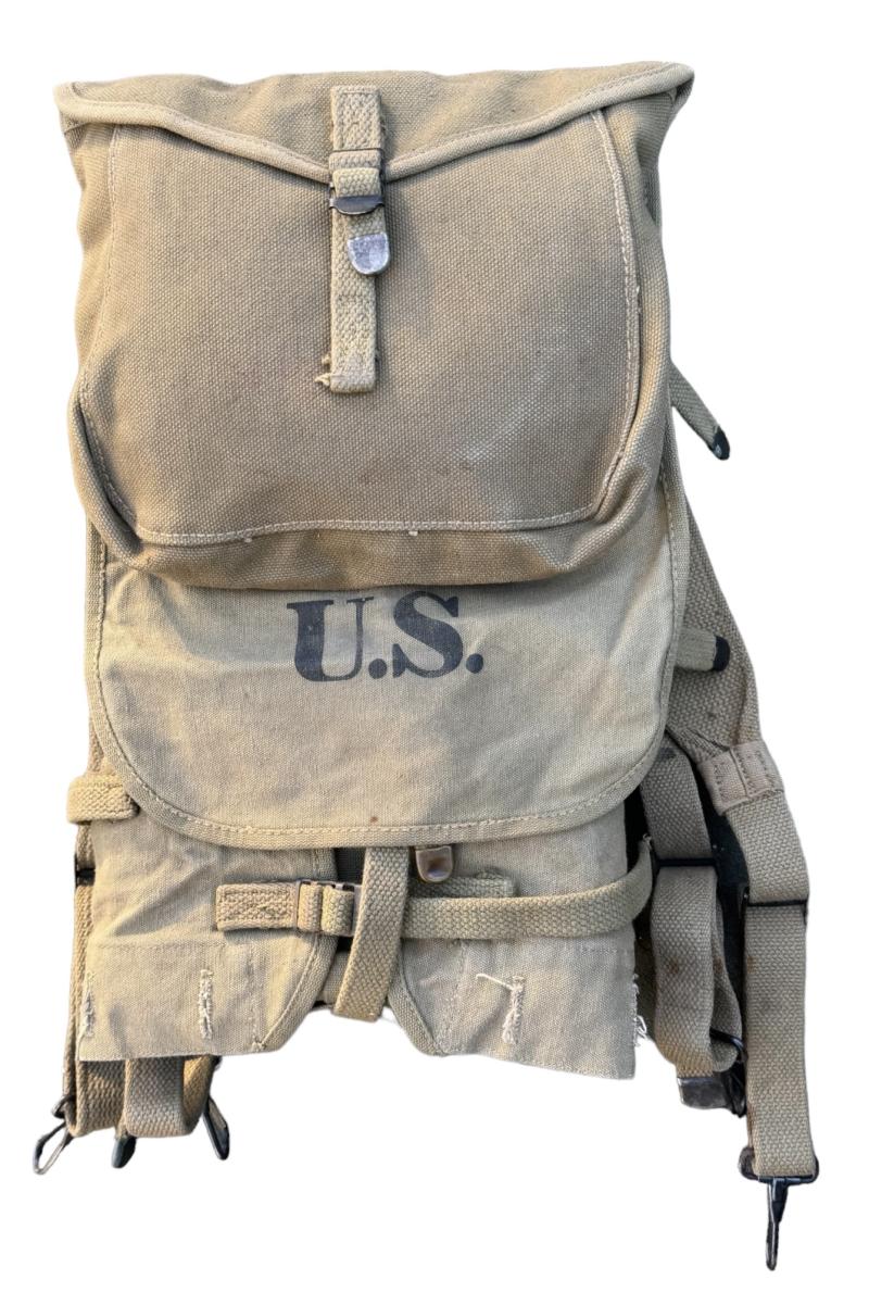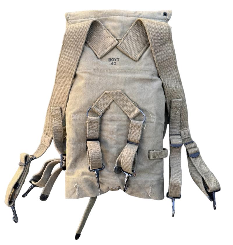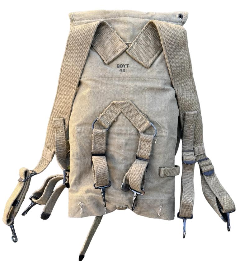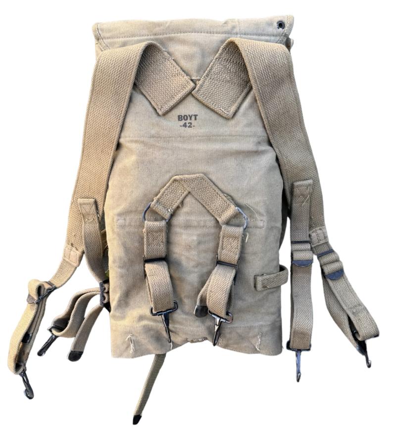 US WW2 M36 Backpack Very nice used US WW2 M36 backpack (so-called Haversack) complete with all straps. Maker marked “Boyt” and dated “1942”. With its original mestin and cutterly pouch. In very good condition.