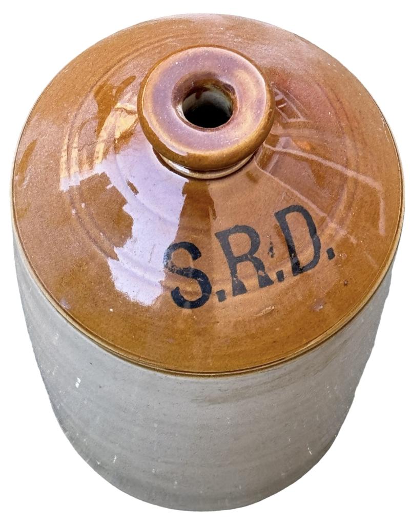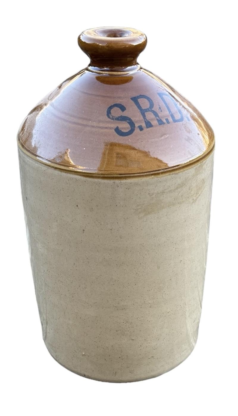 British SRD Rum Jar Nice stone jar "Services Rum Diluted" Rum Nicley maker marked at its bottom dated “1944” Used often before an offensive, the army command dit serve rum to the soldiers. In very good condition.