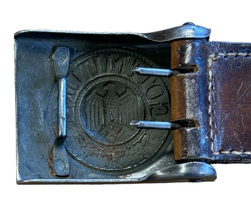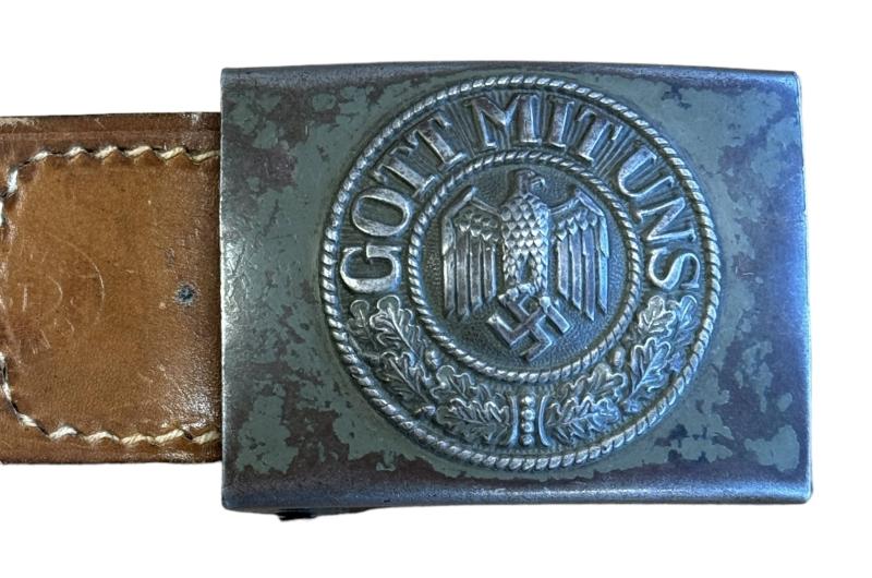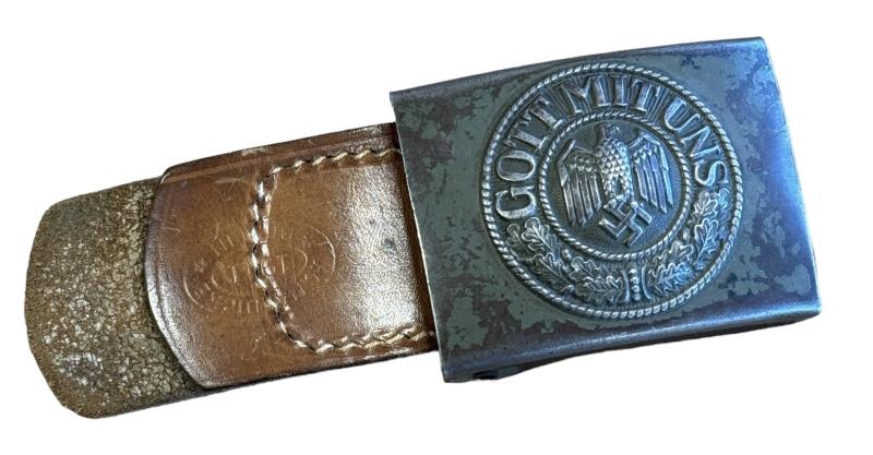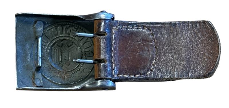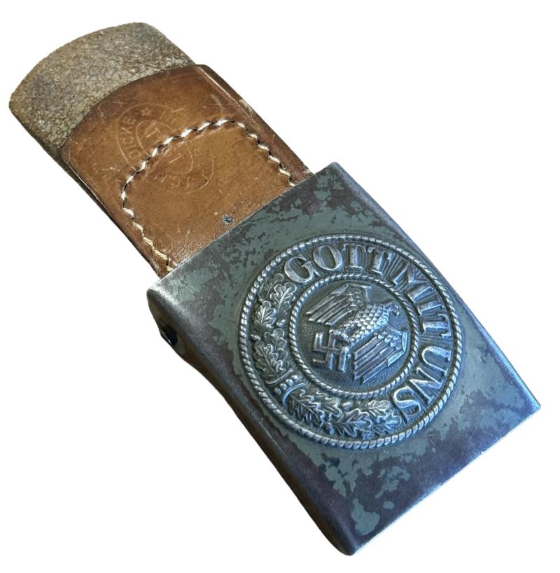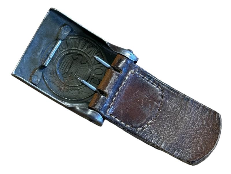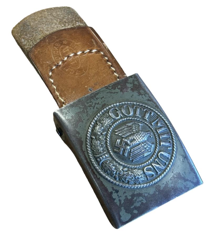 Wehrmacht steel Belt Buckle with leather Tab