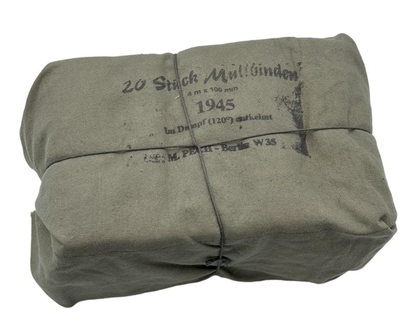 Wehrmacht Medical Bandage Pack Very nice big Wehrmacht medical bandage pack which 20 "Mullbinden" badage's Never being opened with content and "1945" dated Nicely marked and in mint condition,
