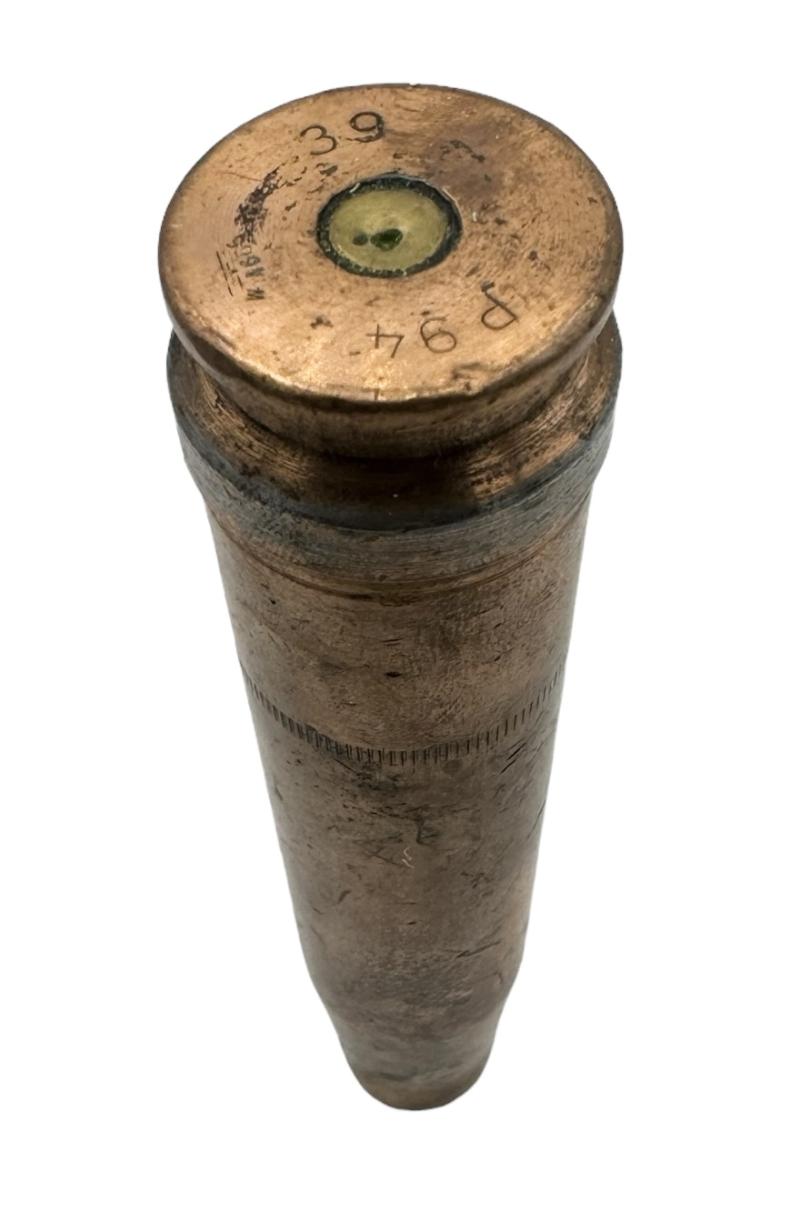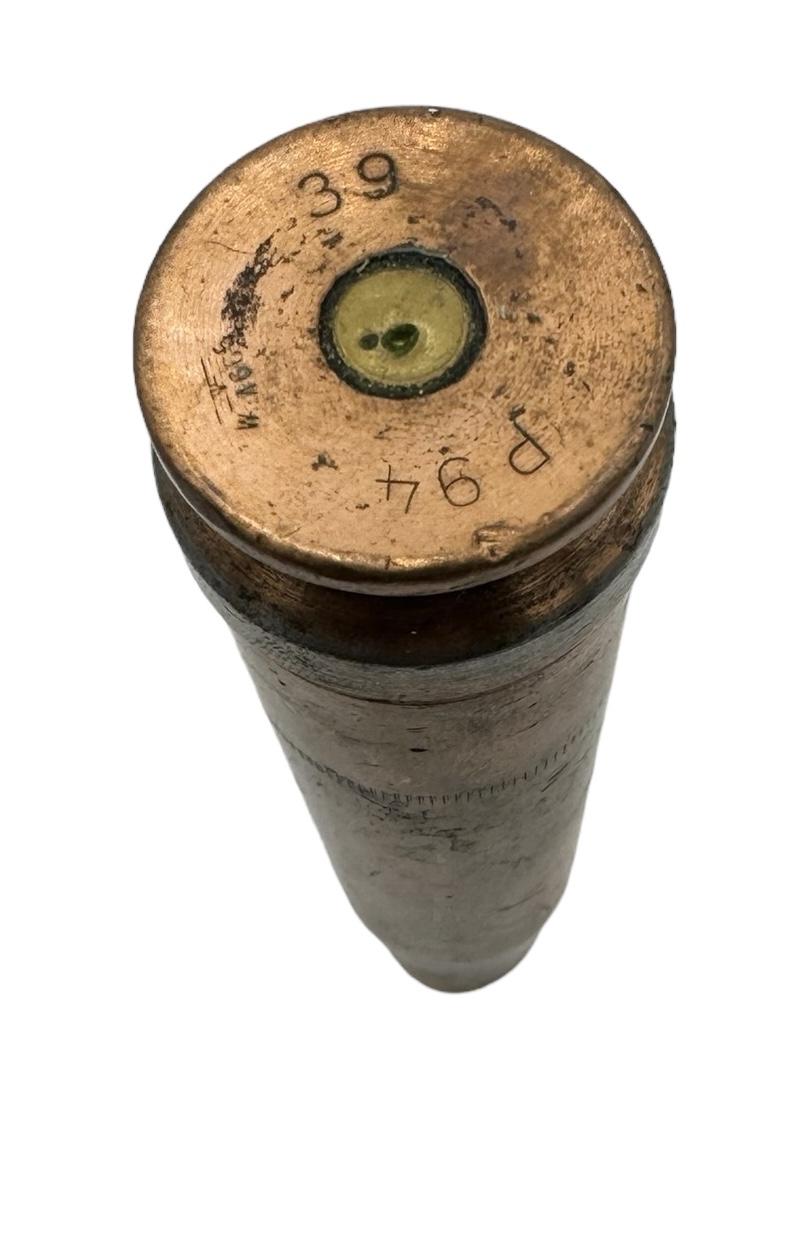 2cm Flak 38 Grenade Shell (empty) Nice brass 2cm Flak 38 Grenade Shell (empty). Waffen Ambt. marked. Dated “1939” In very good condition. Nice for display!