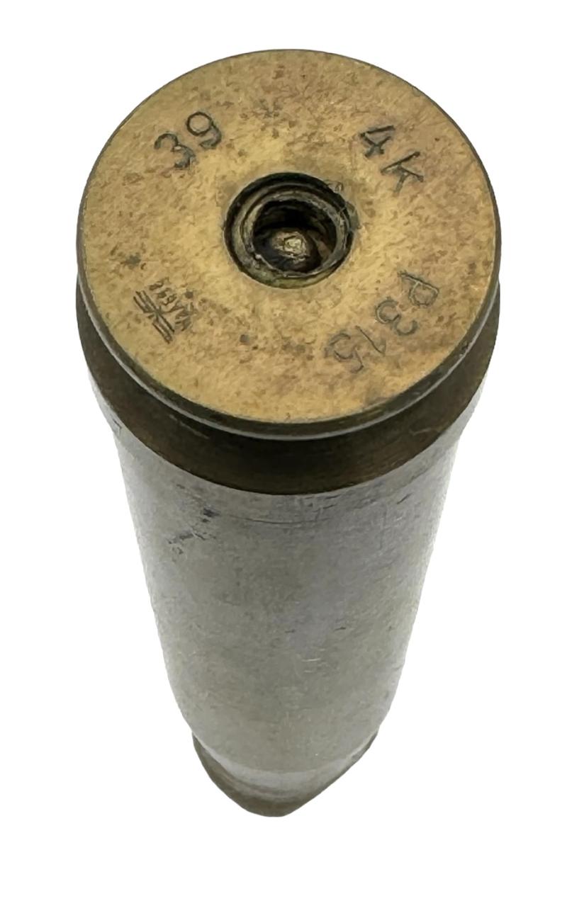 2cm Flak 38 Grenade Shell (empty) Nice brass 2cm Flak 38 Grenade Shell (empty). Waffen Ambt. marked. Dated “1939” In very good condition. Nice for display!