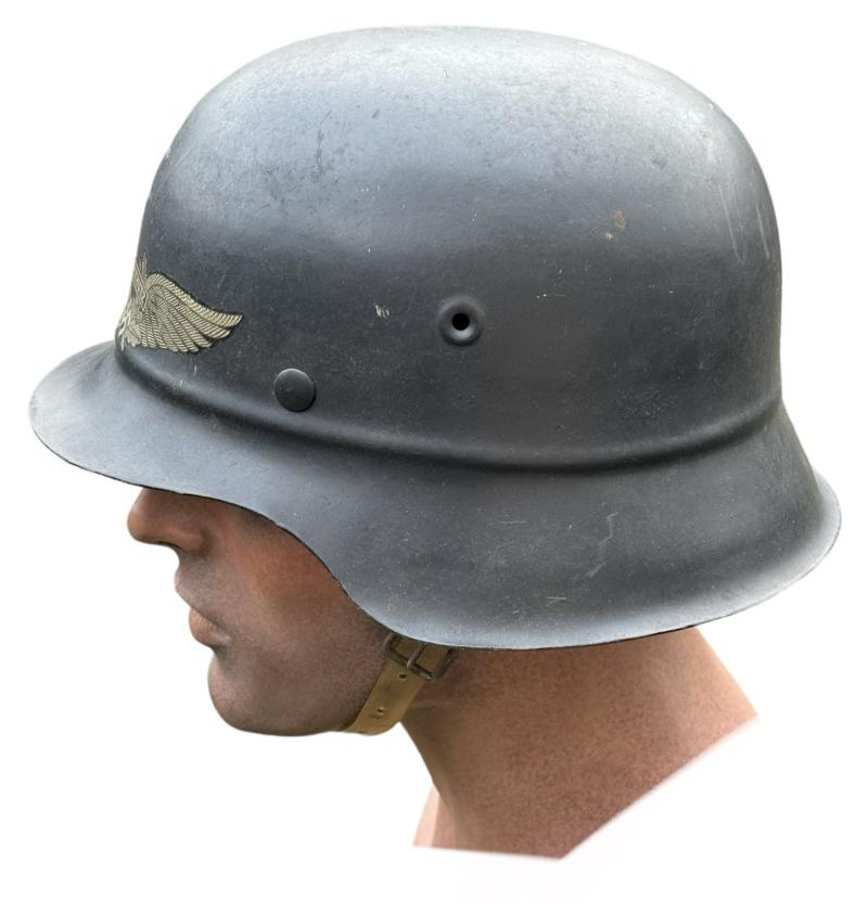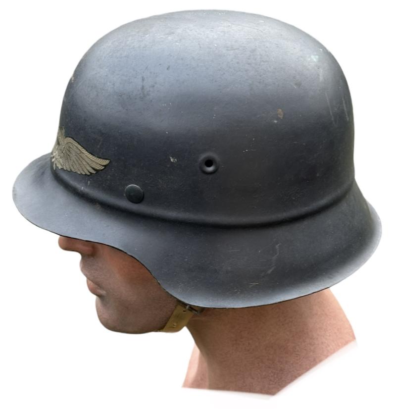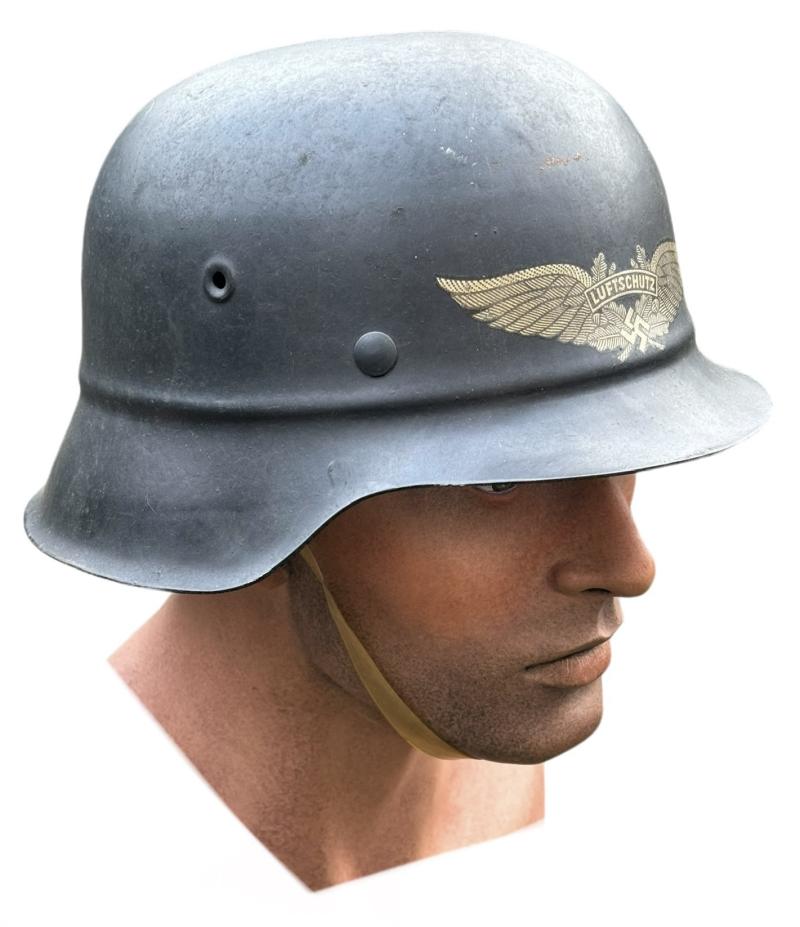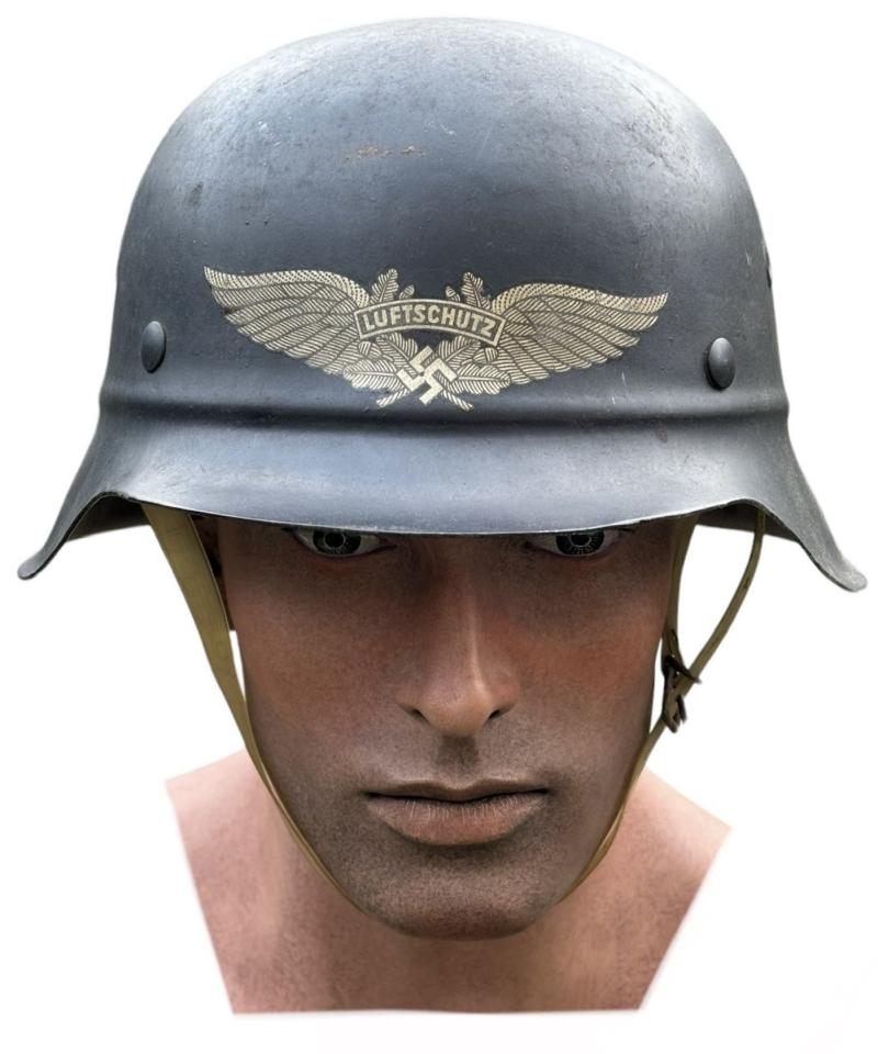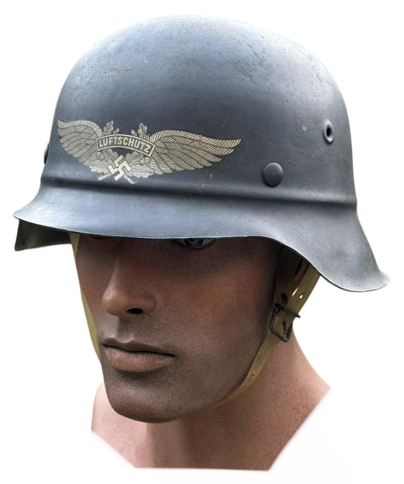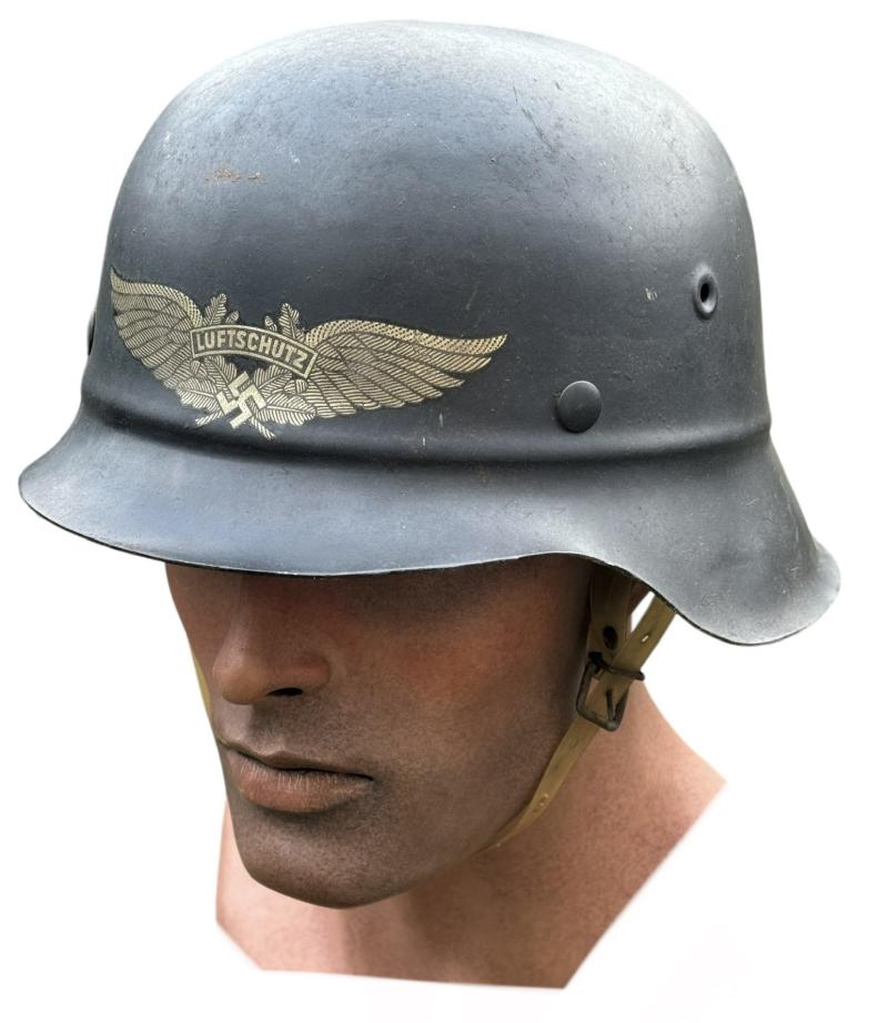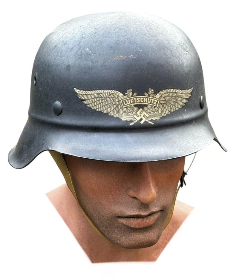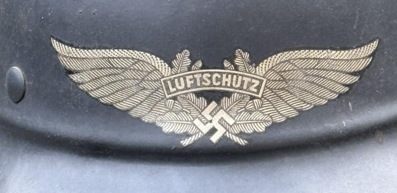 Fantastic and very rare to find, M42 SD Beanded “Luftschutz” helmet. In 99% of its original Luftschutz camo paint and its “Luftschutz” decal in 99%.