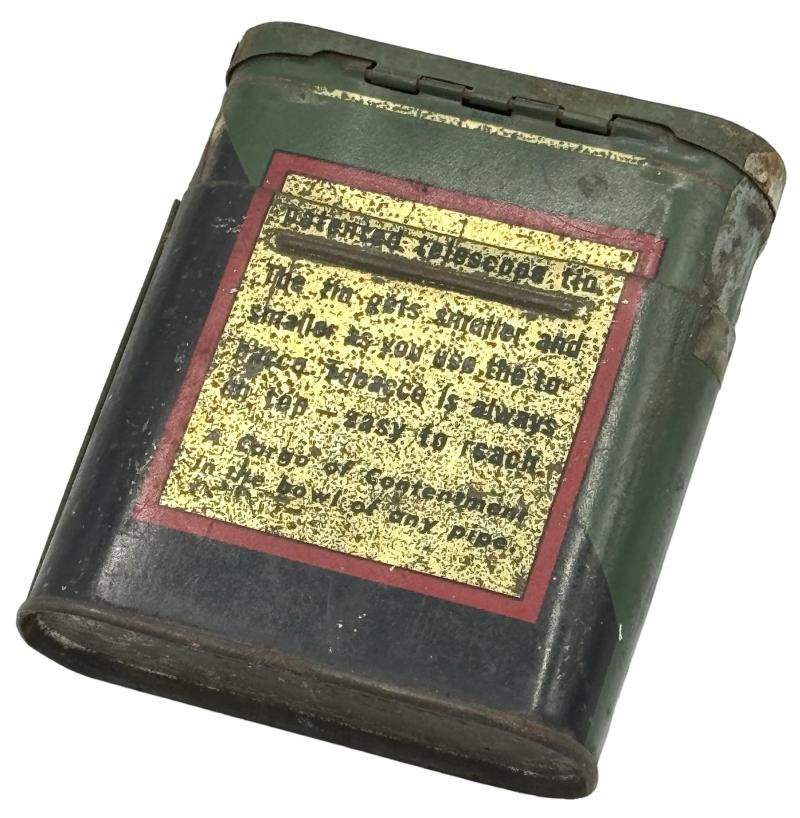 Nice decorative shortened metal US WW2 era tabaco can. Shortened probably for easier carrying?