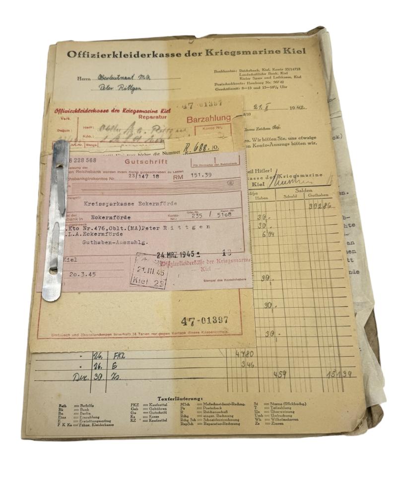 Kriegsmarine NCO Cloting File Complete “Kriegsmarine” file from a “Kriegsmarine” NCO, about his “Kriegsmarine” clothing. In used but good condition. Nice for a “Kriegsmarine” display!