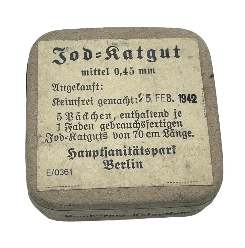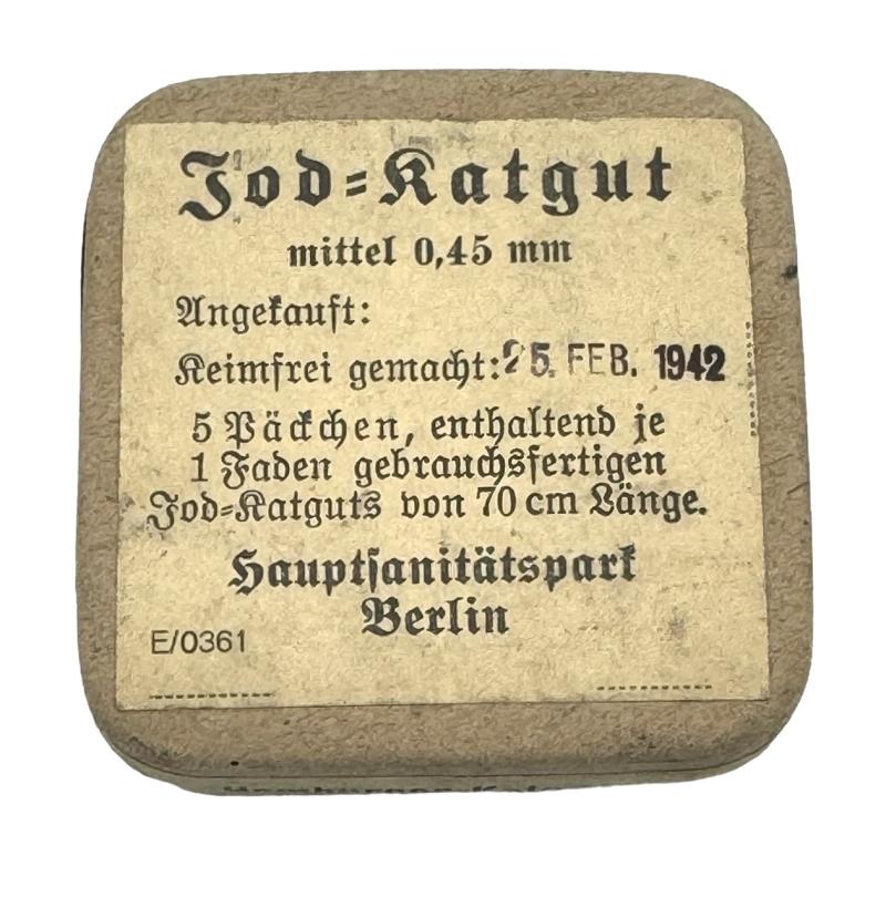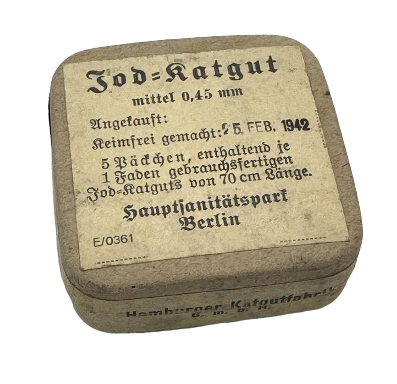 Wehrmacht Medical Sature Jod-Katgut 5 packages in this original carton case of Wehrmacht sature. Jod Katgut Dated "1940” In very good condition.