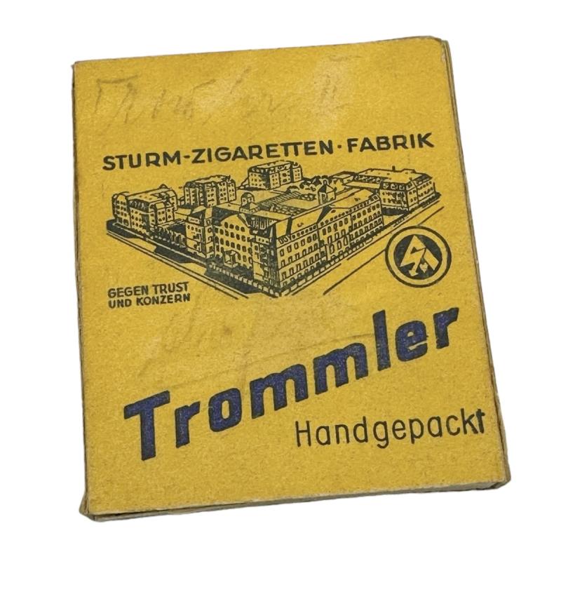 SA Trommler Cigarette Package Extreme rare cigarette package! “SA Trommler, Sturm Zigaretten Fabrik” (no content) Package for 6 cigarettes. Made in the “Third Reich” In very good condition!