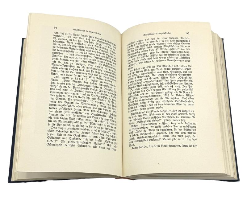 Third Reich Book Mann an der Fahne Written by “Walter Kiehl” and dated “1938”. With text, illustrations and photographs. With Third Reich eagle and swastika onbits back. In used but in good condition.