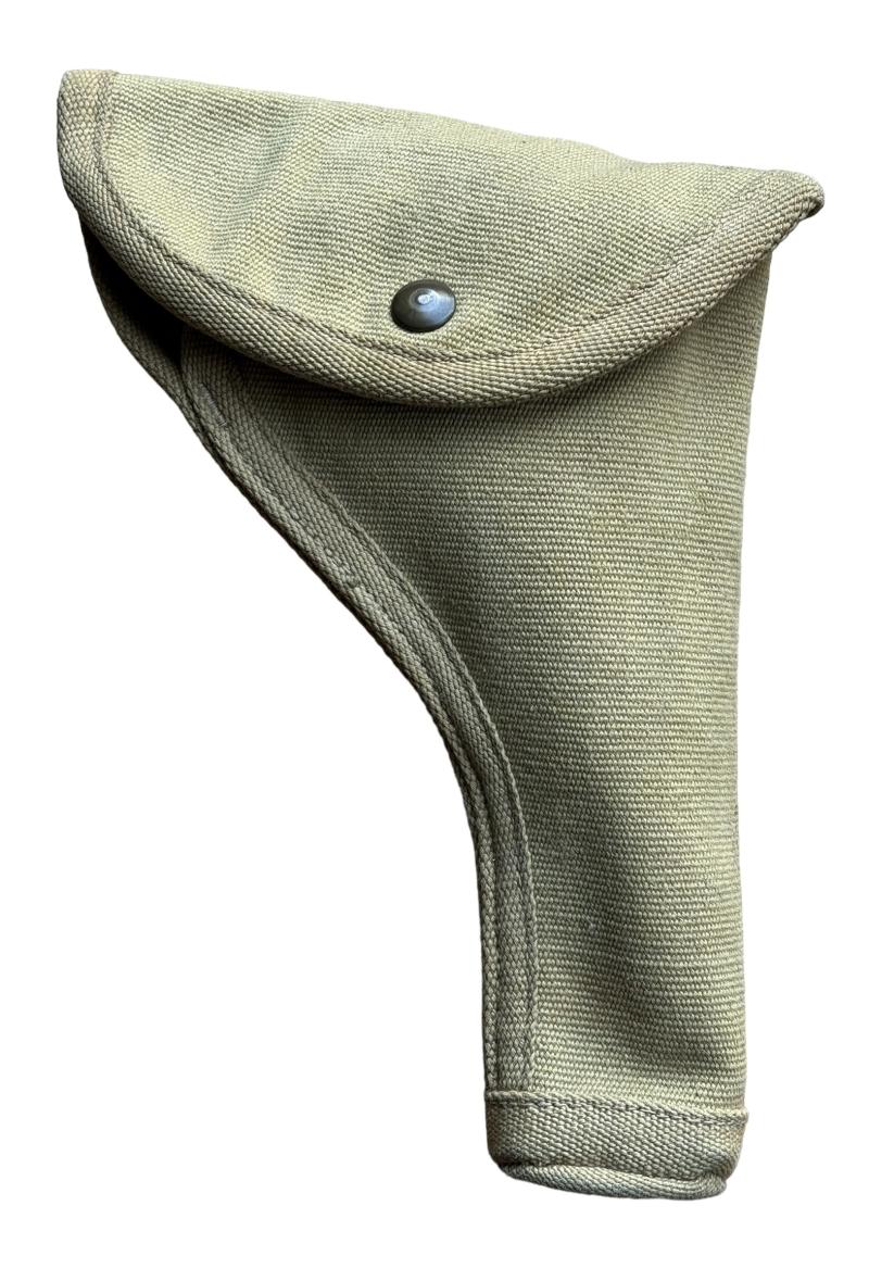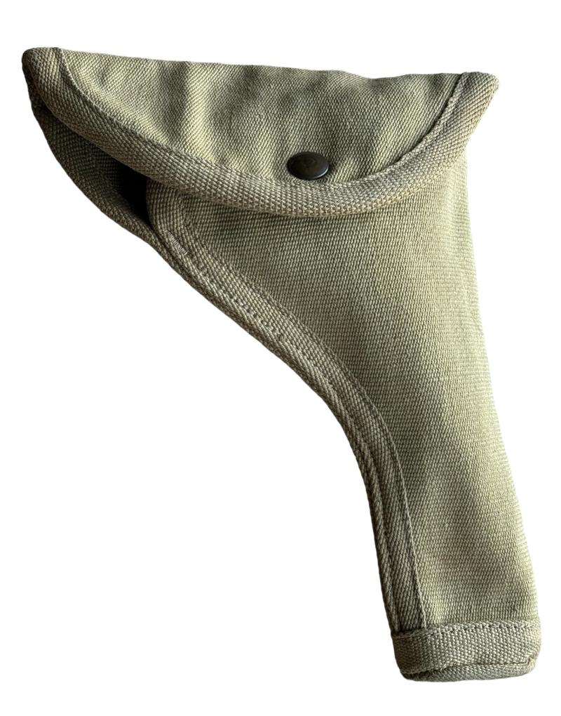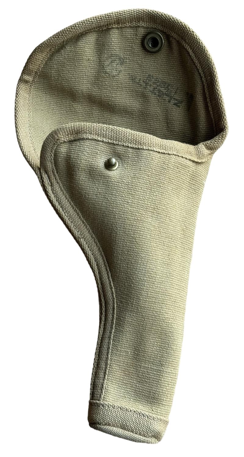Canadian Revolver Holster Very nice near mint Canadian revolver holster. Maker marked and dated “1942/43” hard to read because the ink stamp! In very good condition.