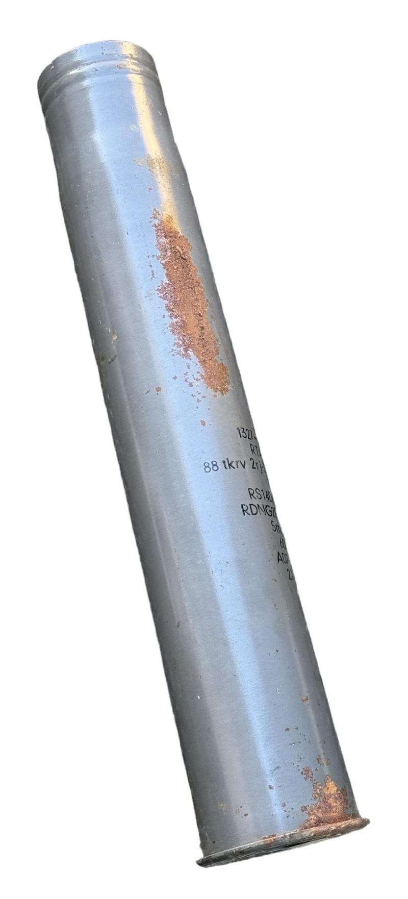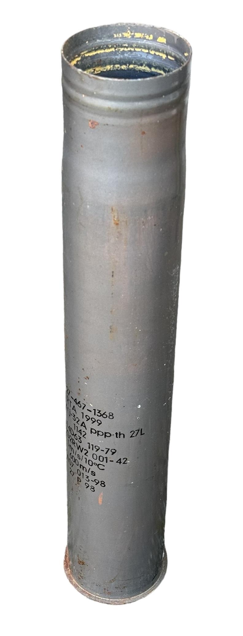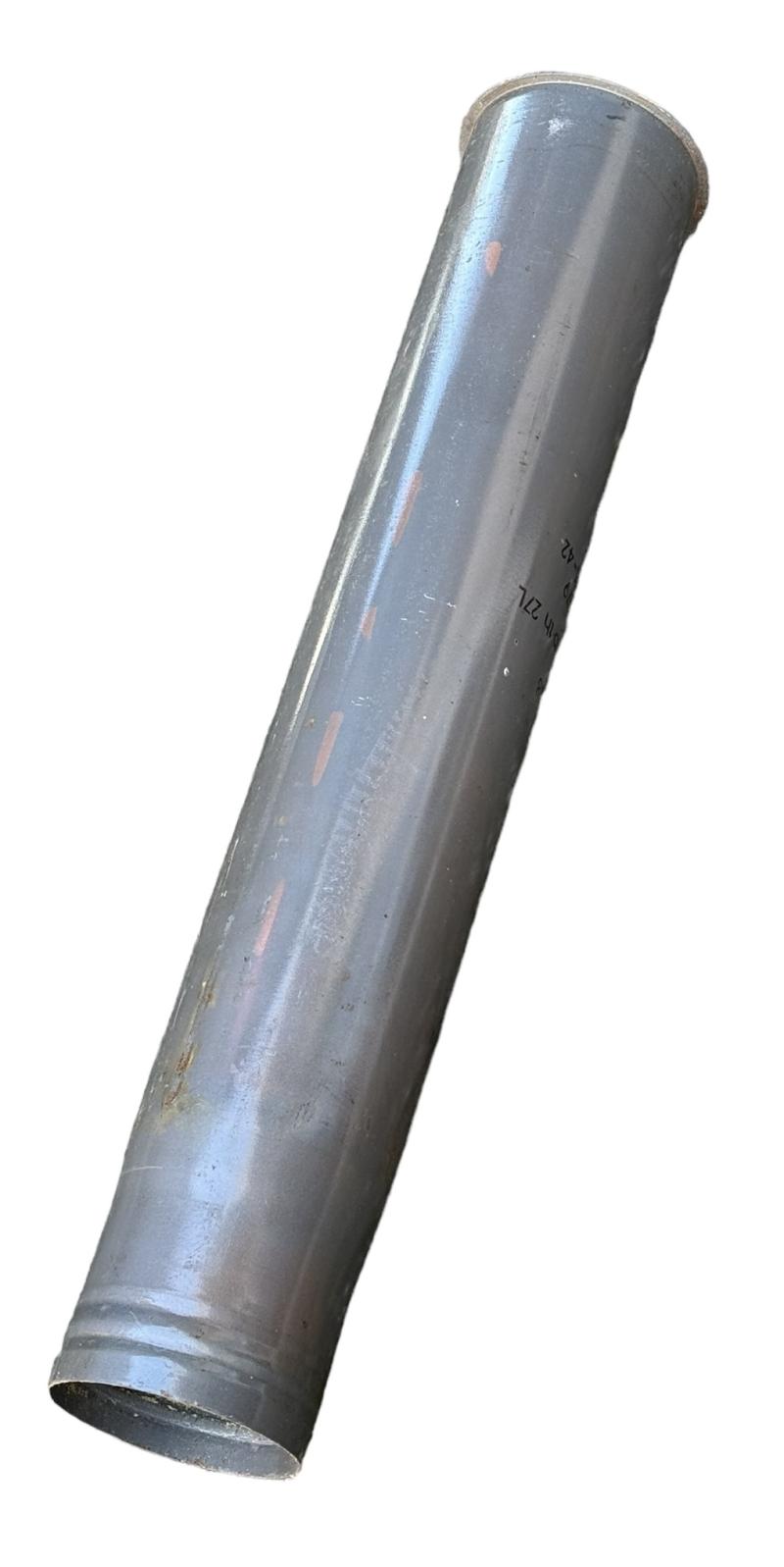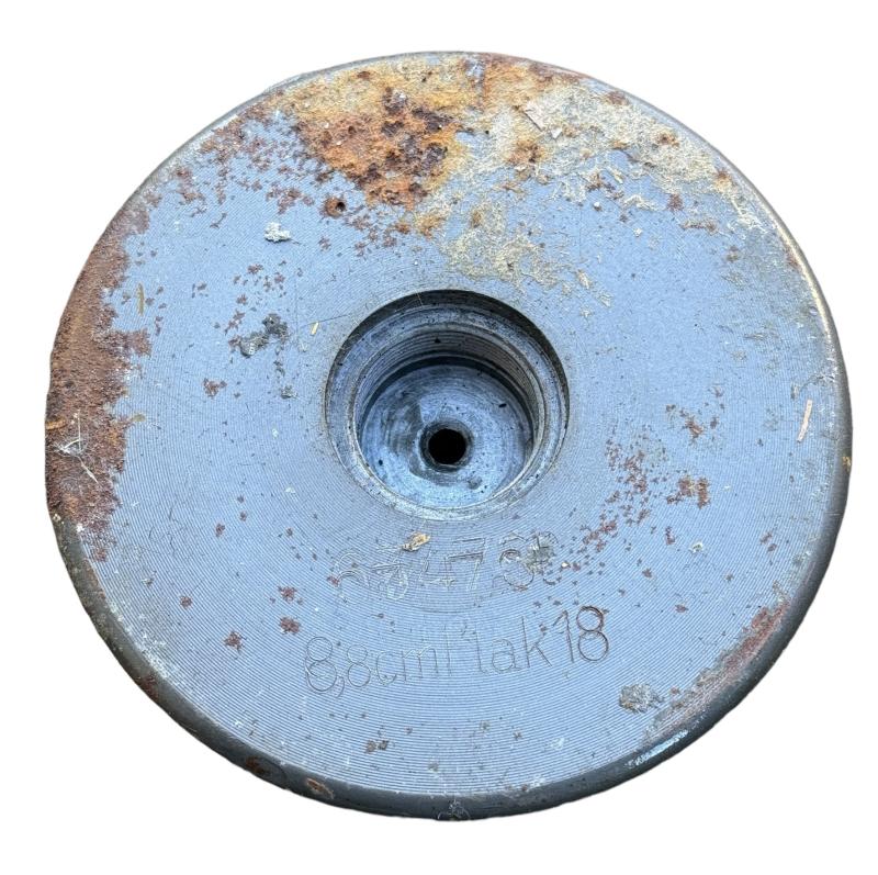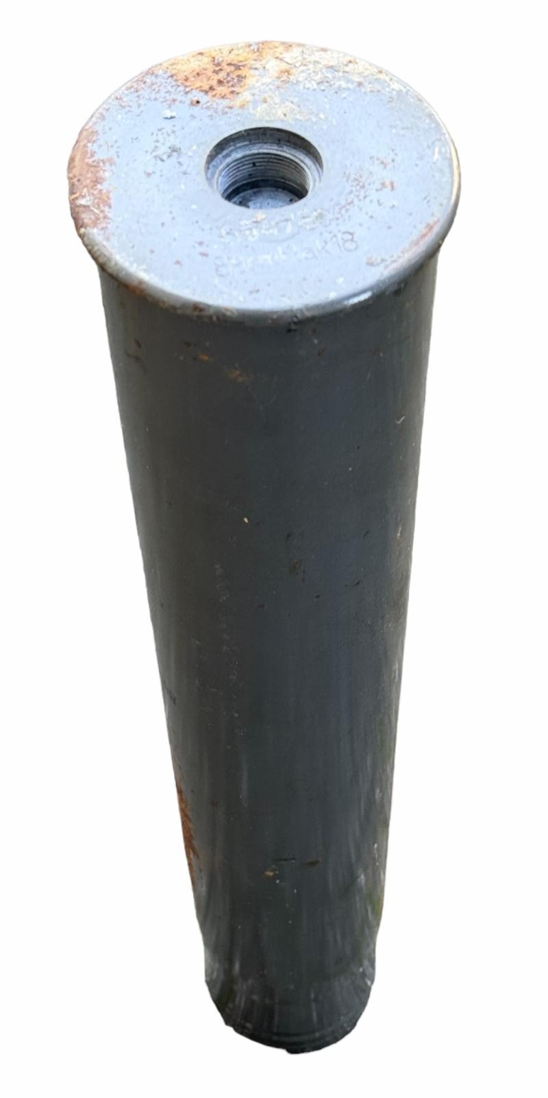 Very nice (empty) steel made grenade shell maker code marked “8,8cm Flak 18” These grenades where used for the famous “8,8cm Flak kanon” and also with different fuse (electric) for the famour “Tiger 1” known as “K.w.K. 36” which is exactly the same gun in principe. Overal a very nice used shell in very good condition. (Re-used by the Finish Army)