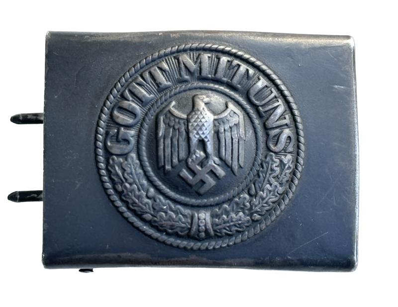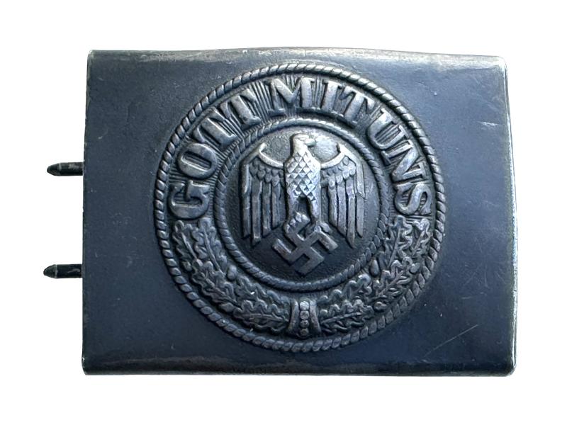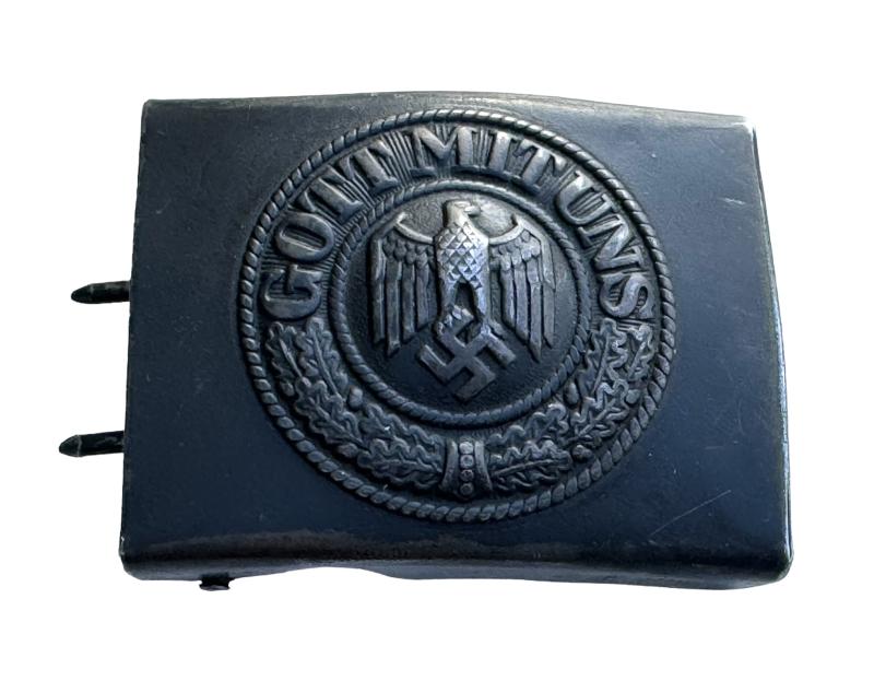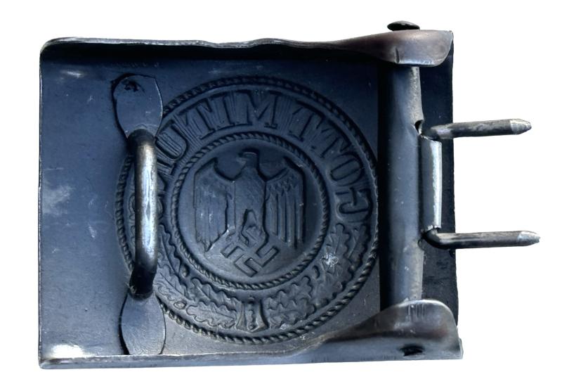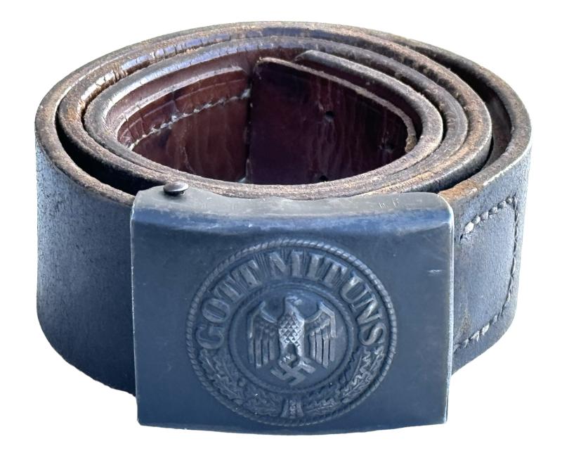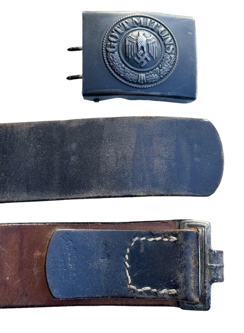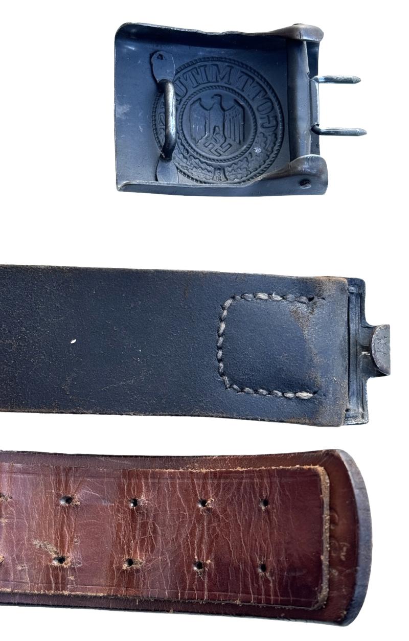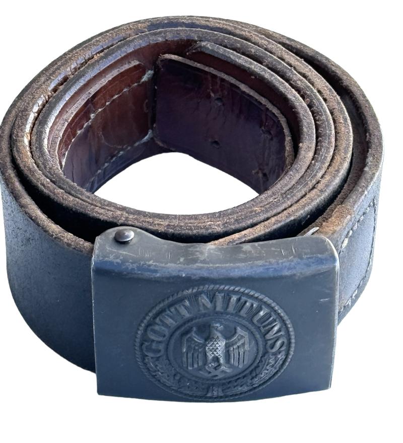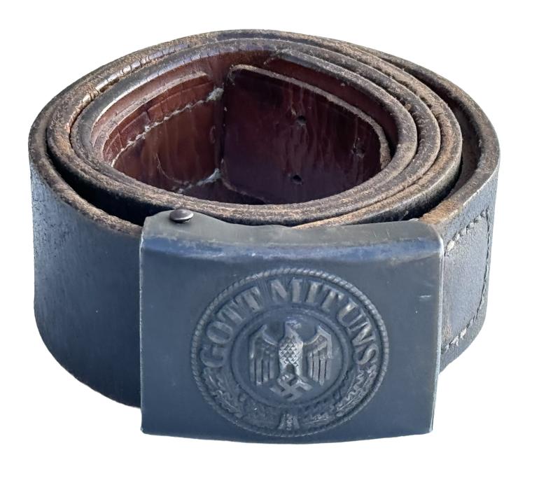 The buckle is a nice un-marked steel Wehrmacht buckle in 98% of its original dark field/grey camo paint. Overal a very nice used Wehrmacht combat belt and steel buckle in very good condition.