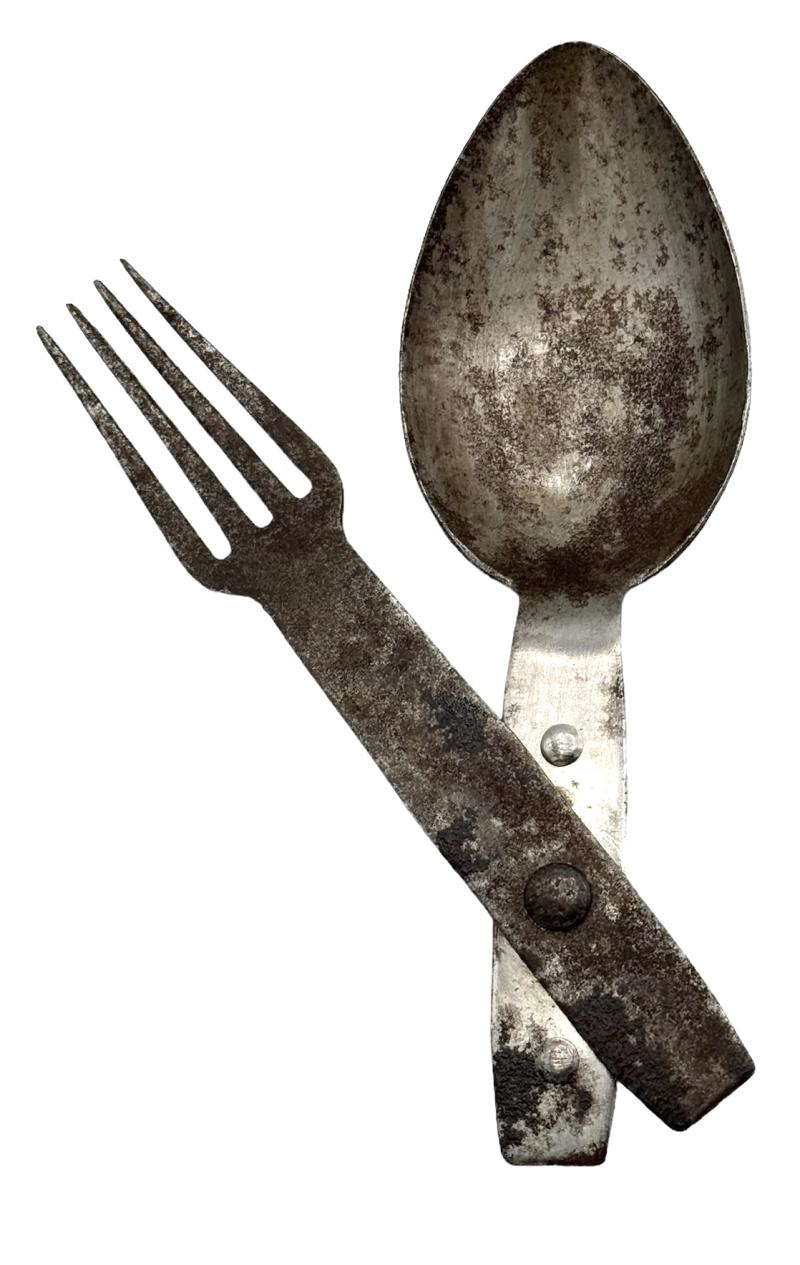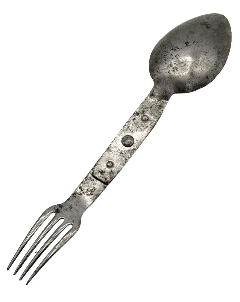Wehrmacht Spoon/Fork Combination (Göffel) Nice used steel made so-called “Göffel” Spoon/Fork combination. In used but good condition. Belongs with in the personal field equipment!