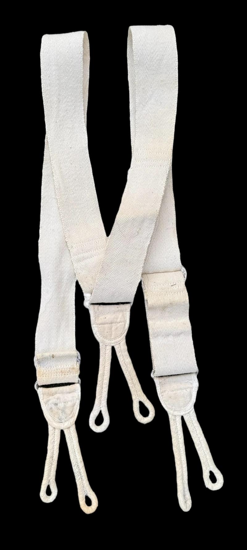 British WW2 Battle Dress Trousers Suspenders Very nice used British WW2 Battle Dress trousers suspenders. Marked not hard to read. Great to complete British Battle Dress trousers.