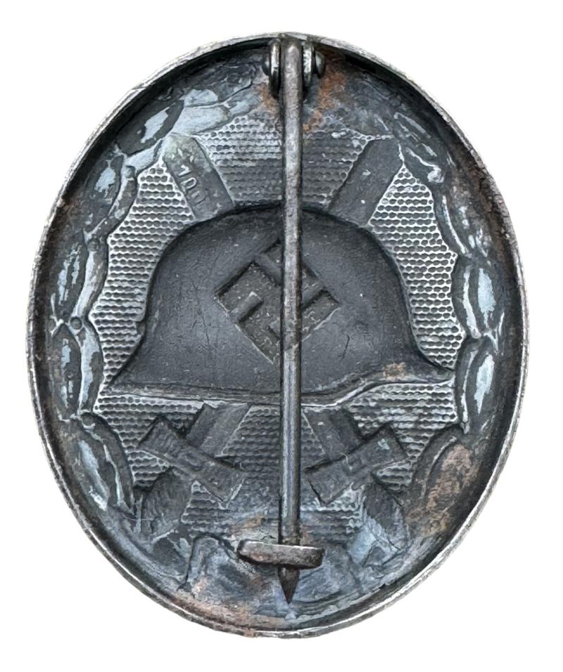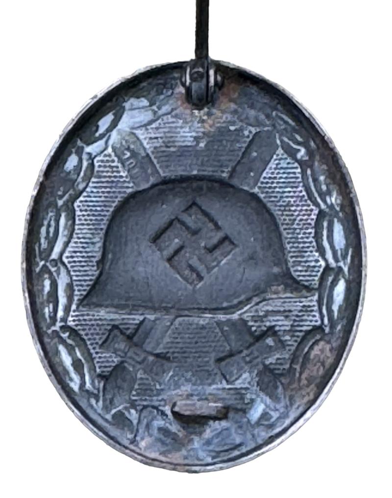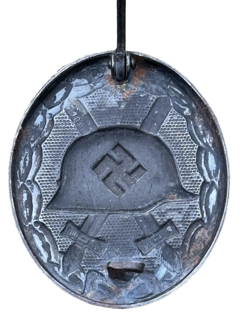 Nice used mid war Wehrmacht wound badge in black for 1 combat wound. Maker code marked “100” which is “Rudolf Wächtler & Lange, Mittweida”