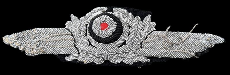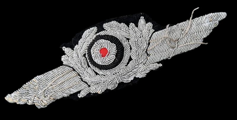 Luftwaffe Officers Visor Cap Cocade Visor cap (Schirrmutze) re-moved Luftwaffe (embroidered) cocade. In used but good condition. Great to complete a used Luftwaffe Officers visor cap.