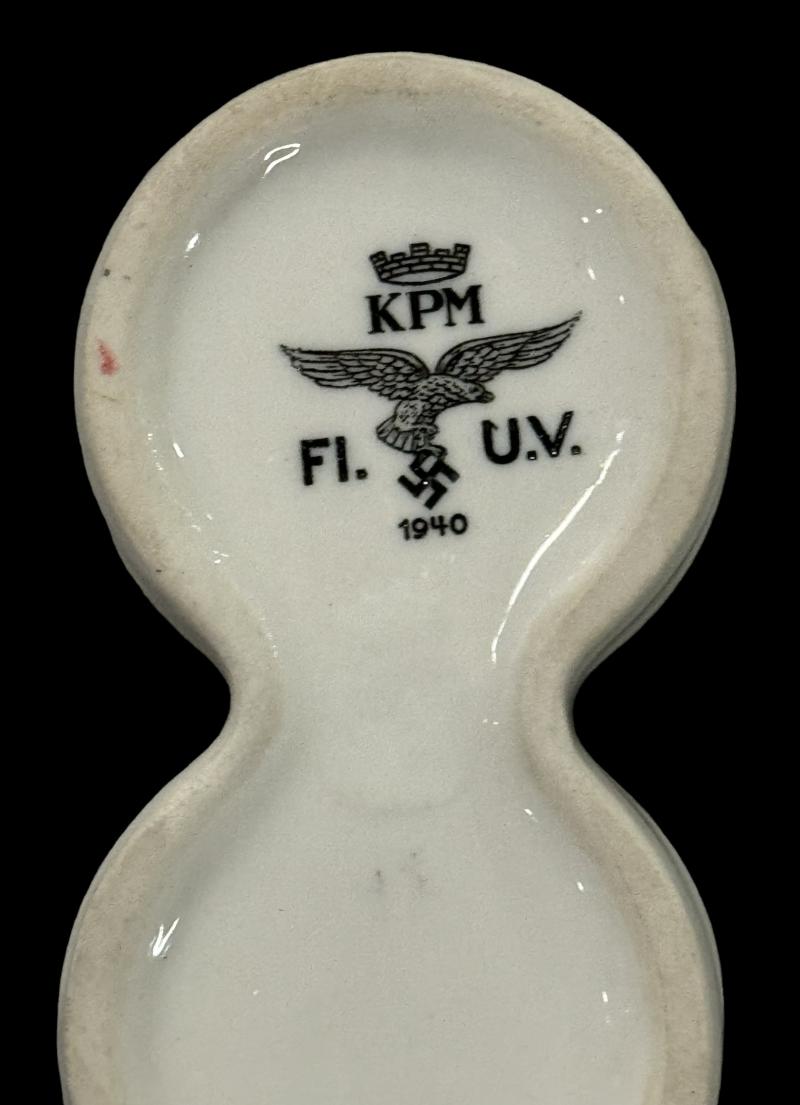 Maker marked “KPM” and marked with the “Luftwaffe” eagle. Dated “1940” and marked “FL.U.V.” Which means “Flieger Unterkunft” in excellent condition.