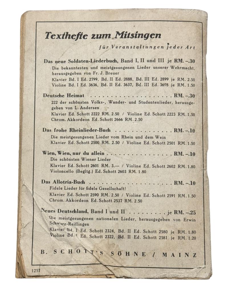 Wehrmacht Pocket Songbook “Das Neue Soldaten Liederenbuch” Heft “2” With Wehrmacht soldiers marching songs In used but good condition.