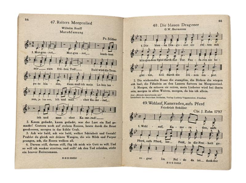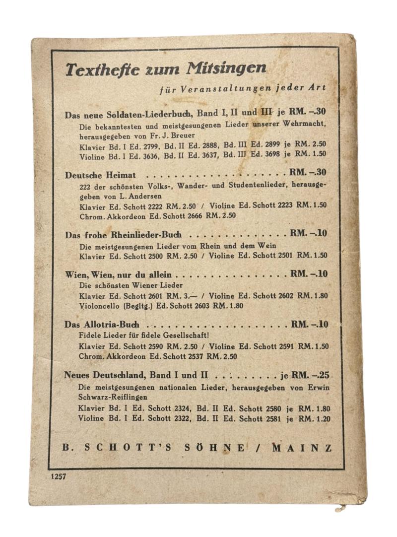 Wehrmacht Pocket Songbook “Das Neue Soldaten Liederenbuch” Heft “1” With Wehrmacht soldiers marching songs In used but good condition.