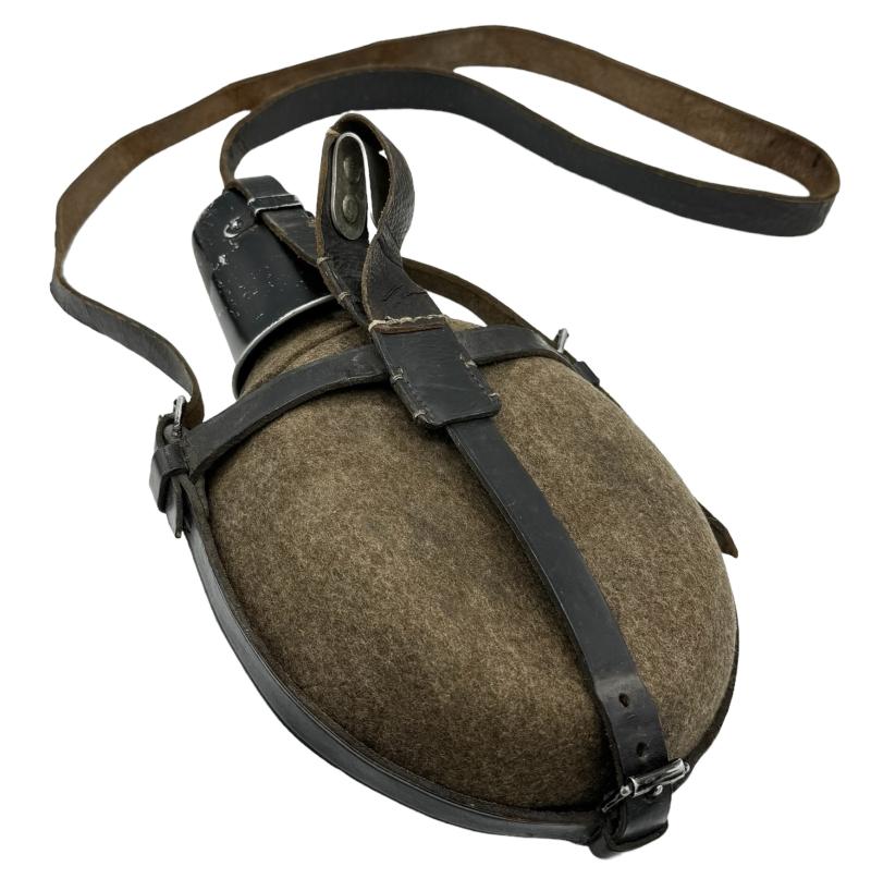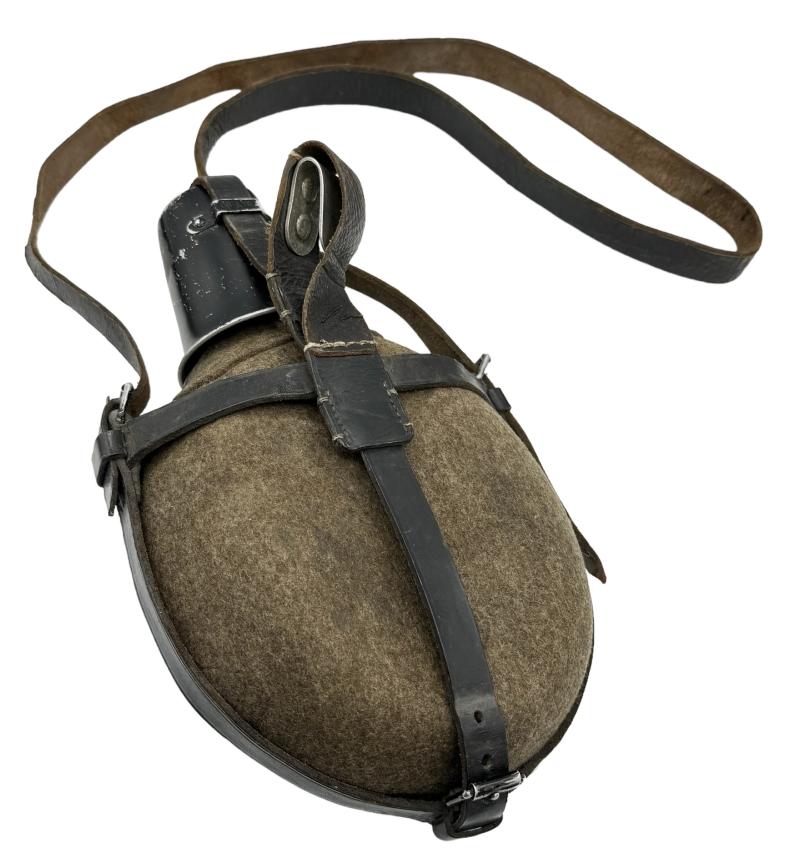 “Sanitäter” (medic) canteen with very nice leather carrying frame and strap and metal cup