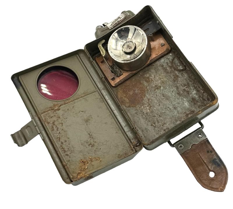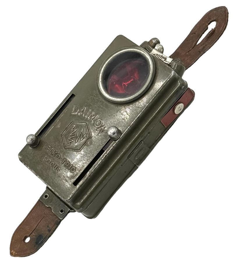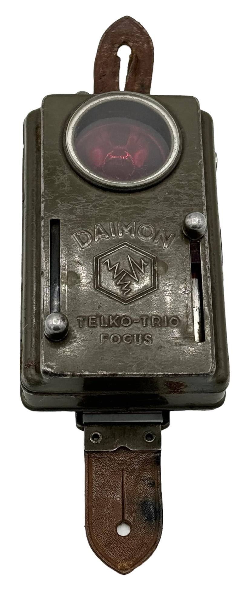 Wehrmacht Daimon Telko Trio Focus Flashlight Nice used Wehrmacht flashlight “Daimon Telko Trio Focus" In original field grey camo paint. In used but in good condition.