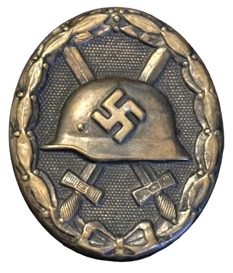 Nice used early brass made Wehrmacht wound badge black. Award for one combat wound