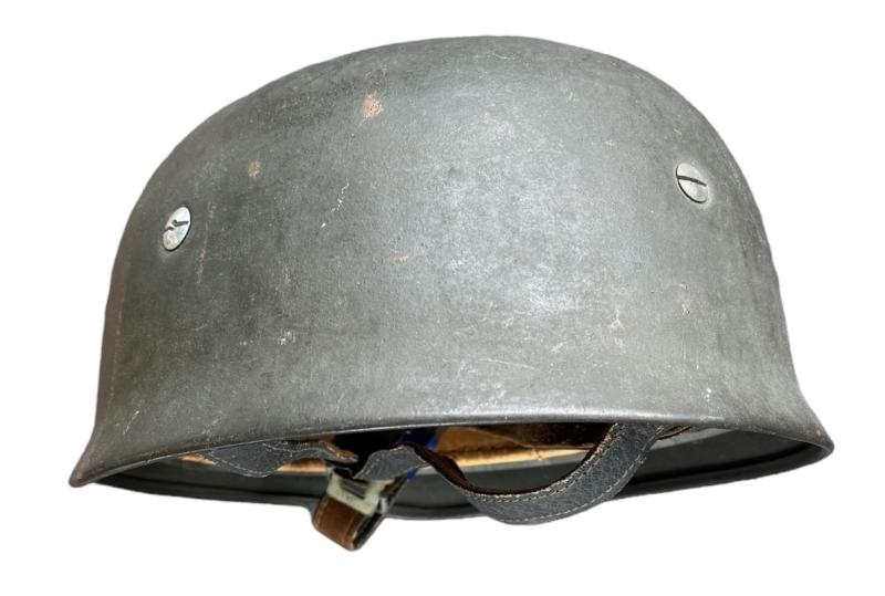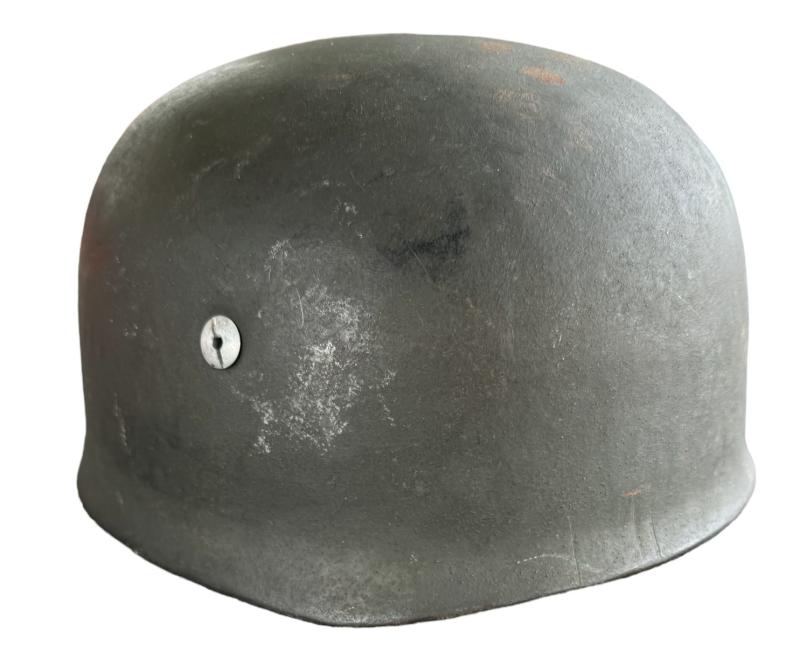 Late war M38 Luftwaffe Fallschirmjäger helmet with late type aluminum bolts in untouched used but in very good condition.