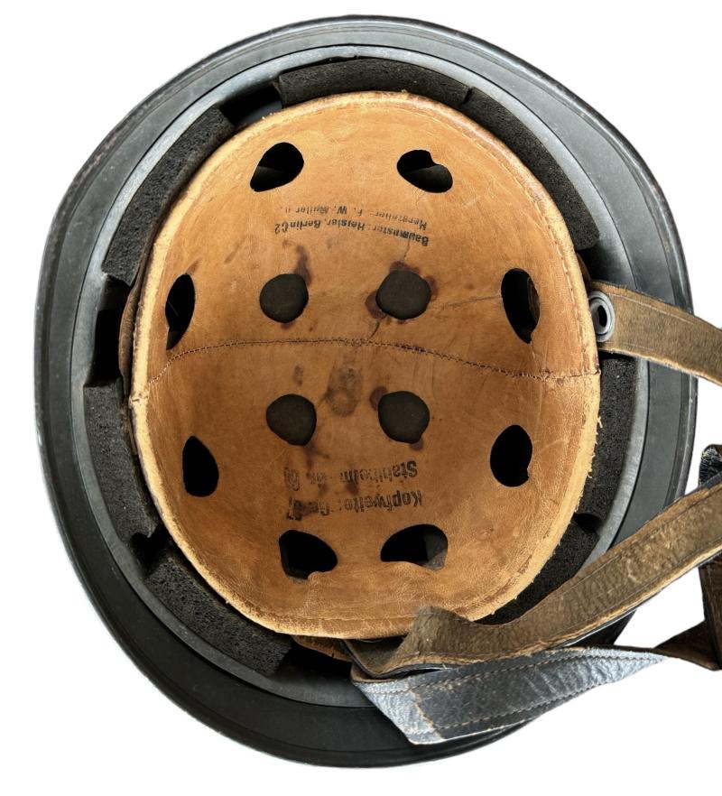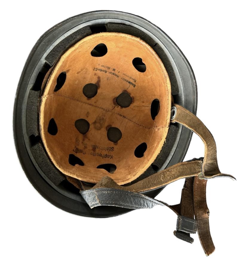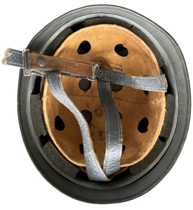 One part of the leather straps is cut off, to take the helmet of a KIA Fallschirmjäger. In “The Netherlands”