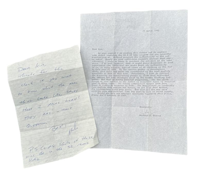 WaffenSS M44 DOT camo Tunic & Trousers (With Mike Beaver Letter of authenticity