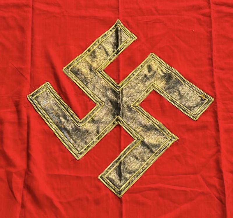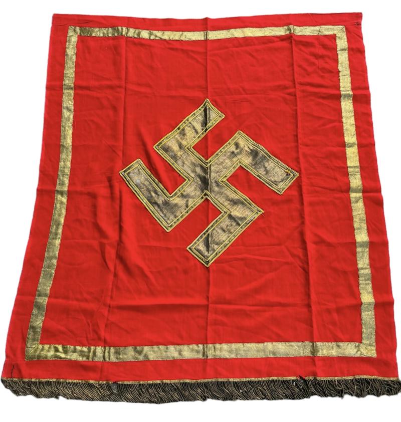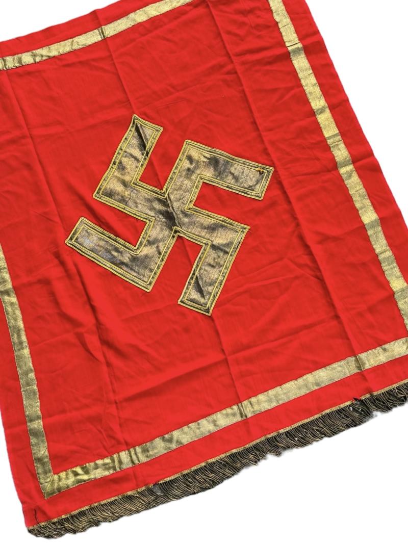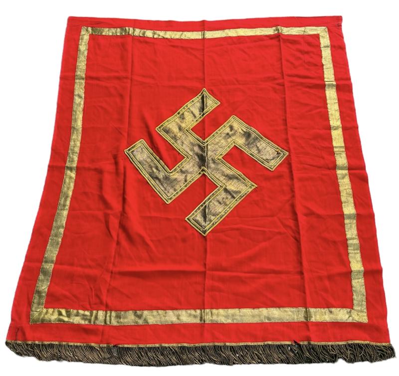 NSDAP Podium Banner Nice and rare NSDAP Podium banner. Stamped twice with “Kreistag 1942, Grevenmacher” Size “110”cm x “100”cm In used but in very good condition. Great for display!
