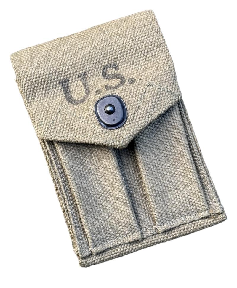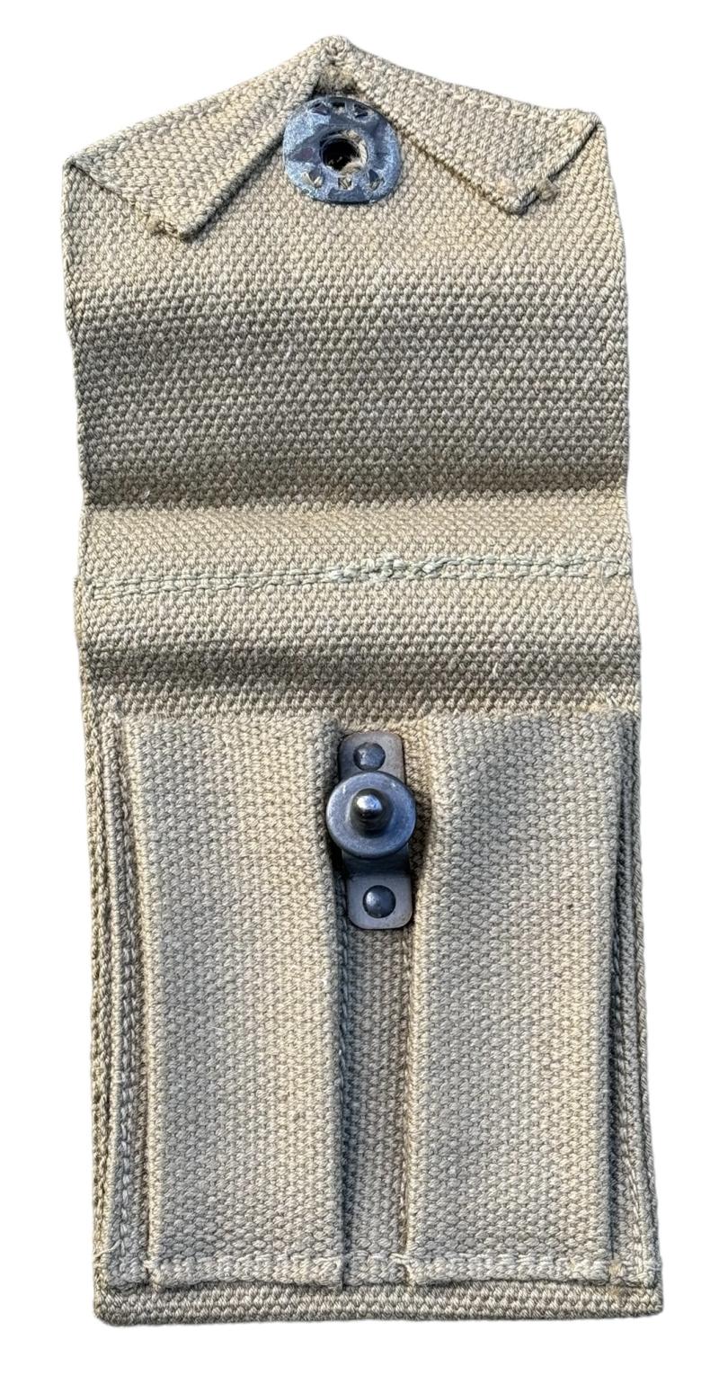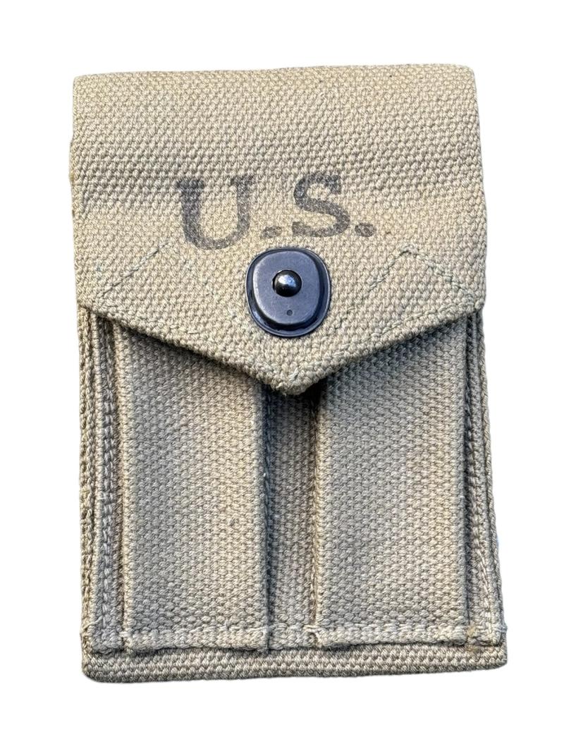 US WW2 M1911 Magazine Pouch Mint condition pouch for 2 box magazines for the US WW2 “M1911” service Pistol. Maker marked and 1942 dated. In very good condition!