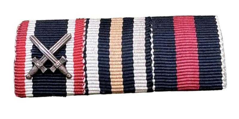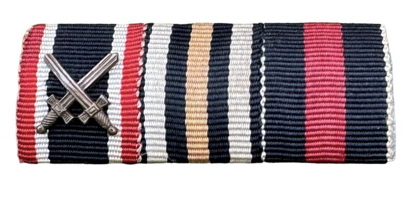 Wehrmacht Ribbon Bar Ribbon bar with War Merrits Cross with swords “1939”, Frontkämpfer medal “1914-1918”, 1 Oktober “1938” medal. In used but good condition.