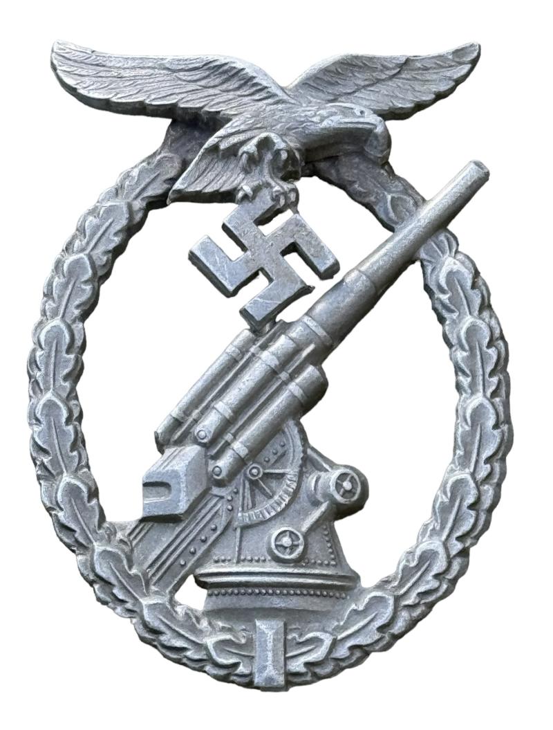 Luftwaffe Flak Abzeichen “Flugzeug Abwehr Kanonne” (anti aircraft badge) overal a very nice Luftwaffe Flak badge in used but very good condition
