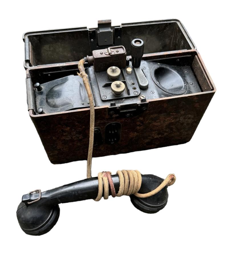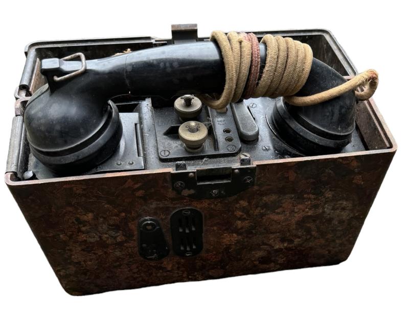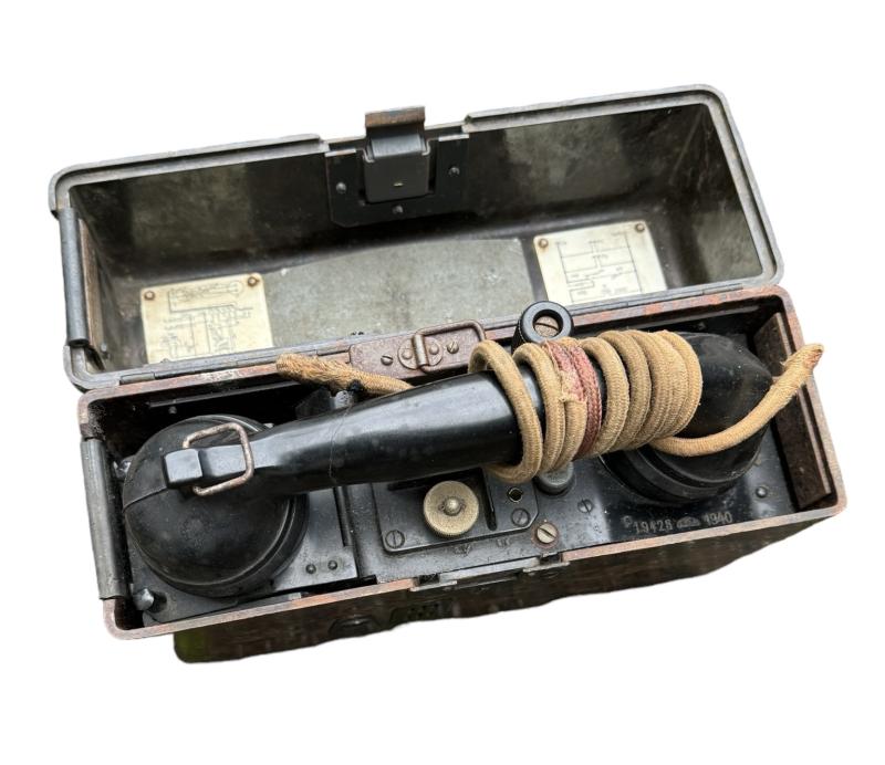 Wehrmacht FF33 Flieldphone Used but nice “1940” dated Wehrmacht FF33 fieldphone. “Feld Fernsprecher 33” Overal the FF33 fieldphone is in used but very good condition. Great for a display!